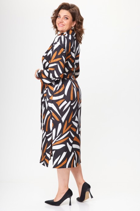 Платье-рубашка свободного кроя - выполнено из легкой, приятной к телу ткани с модным оригинальным принтом. Универсальность кроя и приятый материал сделают его любимым в вашем гардеробе. Демисезонная модель – готовый образ на каждый день, который подойдет для работы, учебы, прогулок и торжественного выхода в свет. Платье-рубашка подходит всем типам фигур. Пояс из комплекта позволяет подчеркнуть талию и создать женственный силуэт. Полочка платья с центральной супатной (потайной) застежкой на петли и пуговицы по притачным планкам. В боковом шве, в области бедер, обработаны карманы. В нижней части бокового шва обработаны разрезы. Рукав рубашечного типа, длинный, по низу - со складками и на притачной манжете с застежкой на петли и пуговицы.