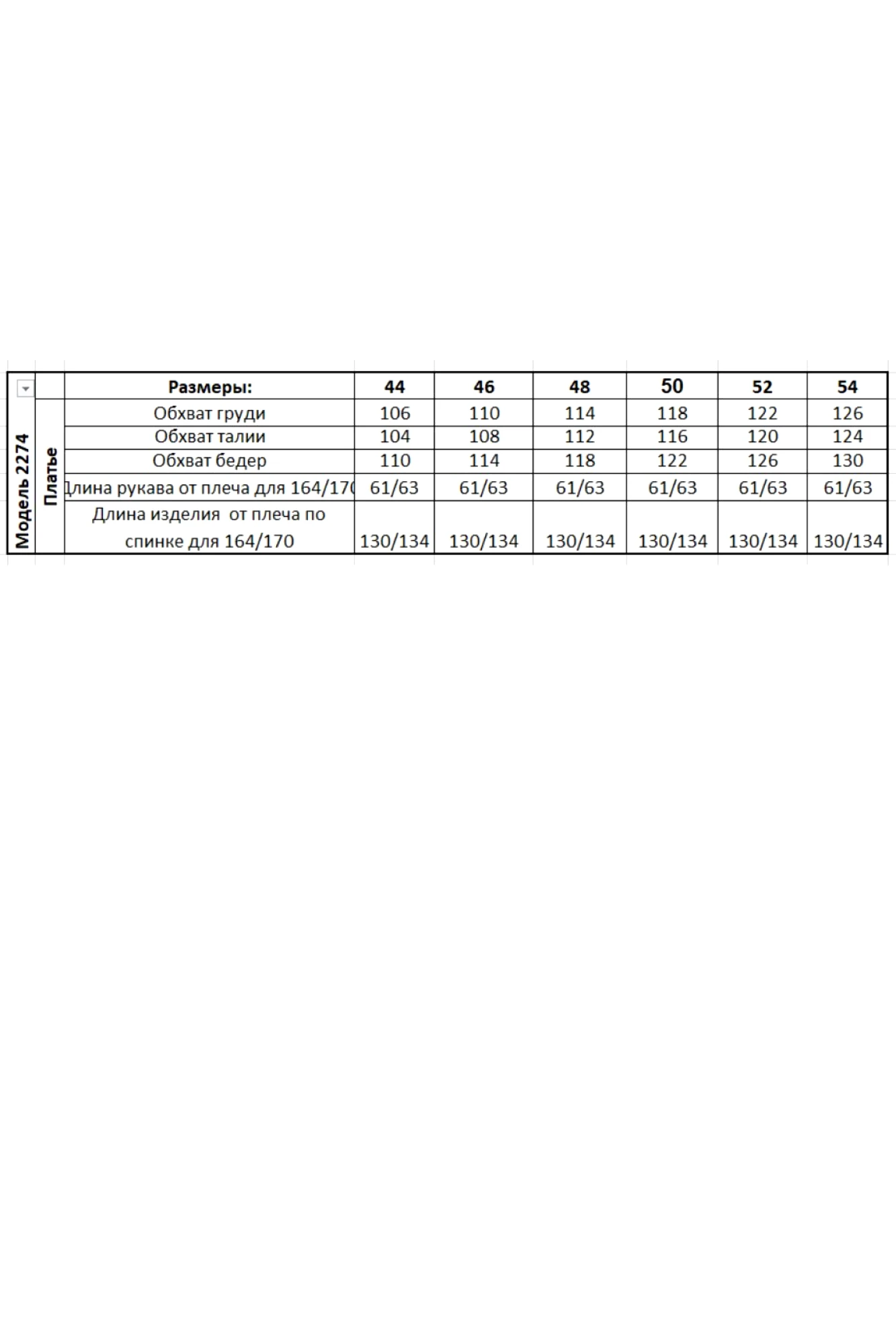 Таблица размеров