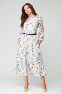 Элегантное платье из шифоновой ткани с оригинальным принтом. Горловина овальной формы, нагрудные вытачки направлены от бокового шва к центру груди, спинка со средним швом и каплевидной застежкой на пуговице. Низ платья обрамляет волан, наполняя образ воздушной многослойностью. Рукав втачной, одношовный, низ рукава собран на эластичную декоративную тесьму. Платье на трикотажной подкладке. Нарядное платье, в котором Вы будете выглядеть женственно и романтично. К платью прилагается съемный пояс.