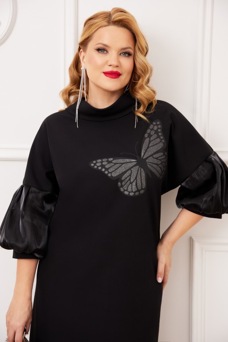 Роскошное нарядное платье, выполнено из плательной ткани Барби с добавлением вискозы. Платье полуприлегающего силуэта, по переду декорировано роскошной печатью Бабочка, что придает платью особый шарм. Рукав спущенный, выполнен в стиле фонарик, с отделкой из органзы. Горловина платья выполнена в стиле хомут. Модель стильная и практичная, невероятно стройнит, прекрасно подойдет для торжественного мероприятия, вы будете выглядеть неотразимо и роскошно.