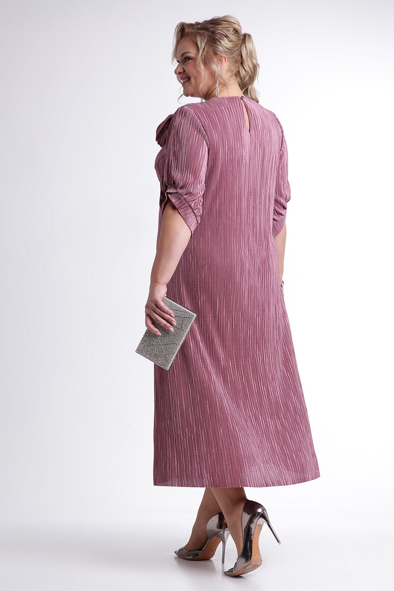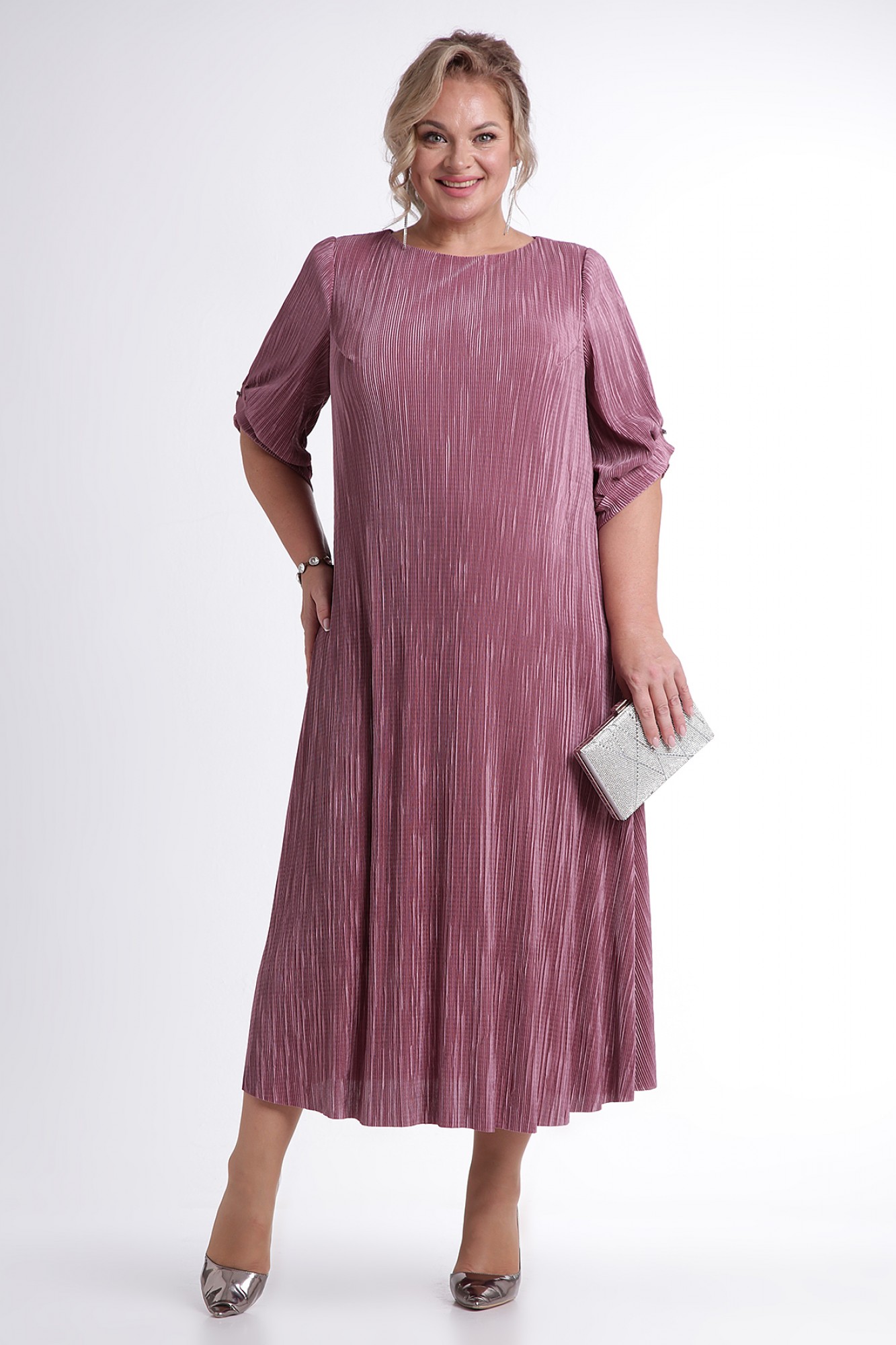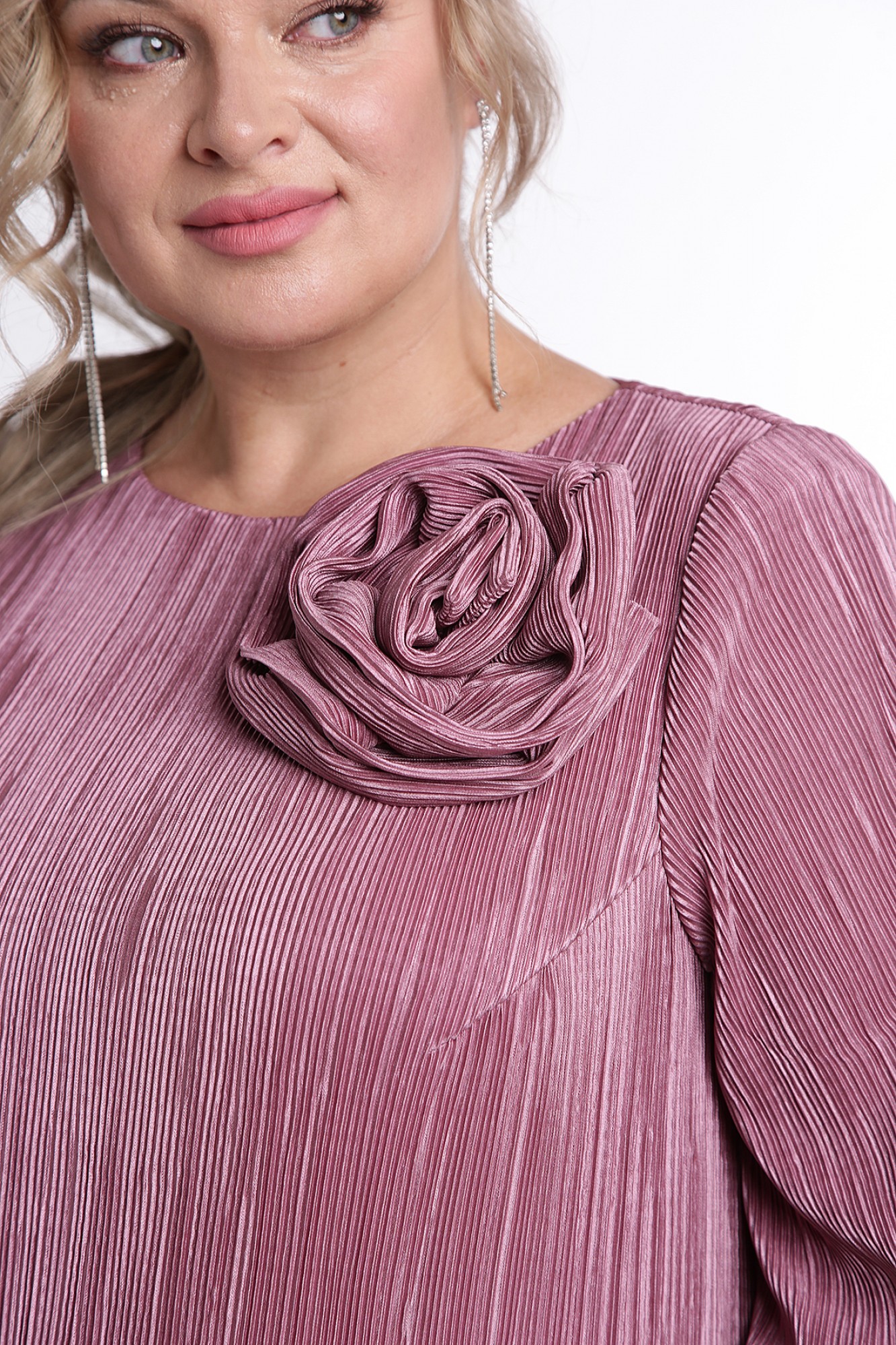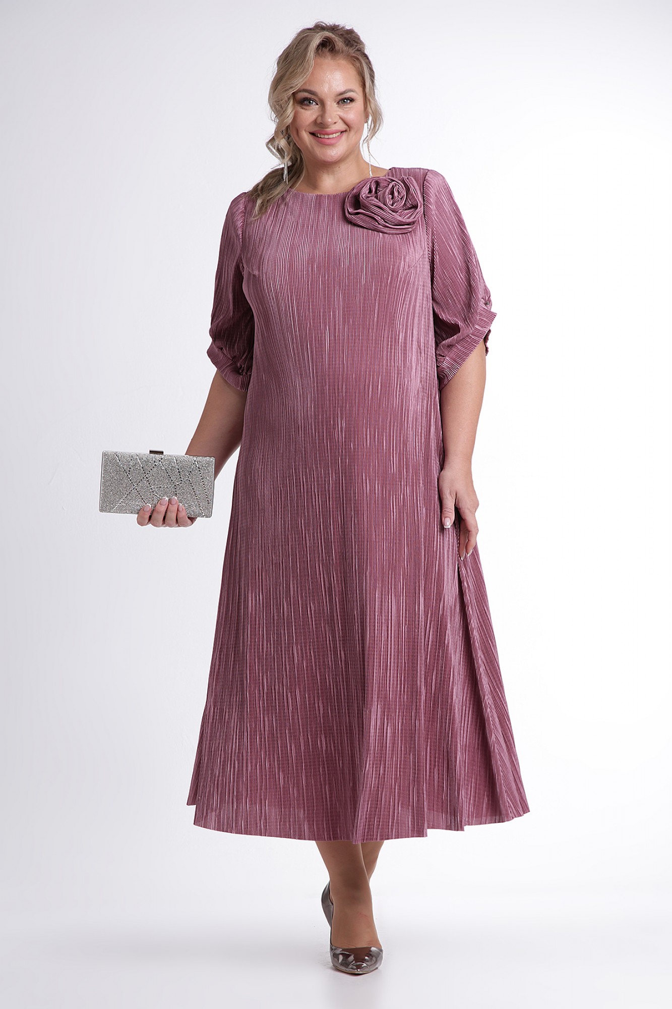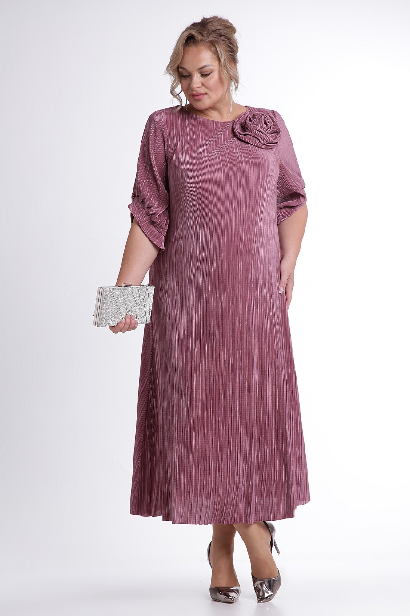 Каждая женщина хочет быть красиво одетой и выглядеть элегантно, ощущая при этом комфорт. Платье из ткани плиссе поможет Вам воплотить задуманное в реальность: оно легкое, удобное в носке, выполнено из мягкой, тонкой и шелковистой ткани, приятной к телу. Легкое винтажное платье с подкладом, обеспечивающим дополнительную защиту от просвечивания, будет уместно в любое время года за счет своей длины макси и свободных рукавов. По спинке, на горловине, обработана капелька на навесную петлю и пуговицу. Рукав втачной, длиной 3/4 с фигурным низом с односторонними складками, с притачной манжетой. Платье декорировано съемным цветком. А для тех, кто хочет подчеркнуть линию талии и сделать силуэт слегка облегающим – этого легко добиться, добавив пояс из своего гардероба. Однотонное платье сочетается с различными аксессуарами и обувью, позволяя Вам собрать множество новых уникальных вариантов носки.
