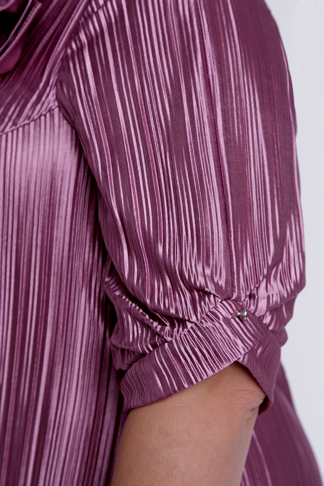 Каждая женщина хочет быть красиво одетой и выглядеть элегантно, ощущая при этом комфорт. Платье из ткани плиссе поможет Вам воплотить задуманное в реальность: оно легкое, удобное в носке, выполнено из мягкой, тонкой и шелковистой ткани, приятной к телу. Легкое винтажное платье с подкладом, обеспечивающим дополнительную защиту от просвечивания, будет уместно в любое время года за счет своей длины миди и свободных рукавов. По спинке, на горловине, обработана капелька на навесную петлю и пуговицу. Рукав втачной, длиной 3/4 с фигурным низом с односторонними складками, с притачной манжетой. Платье декорировано съемным цветком. А для тех, кто хочет подчеркнуть линию талии и сделать силуэт слегка облегающим – этого легко добиться, добавив пояс из своего гардероба. Однотонное платье сочетается с различными аксессуарами и обувью, позволяя Вам собрать множество новых уникальных вариантов носки. Этот наряд будет отличным выбором для мамы или подружек невесты на свадьбу, ведь он сочетает в себе элементы винтажного стиля с современными модными трендами.