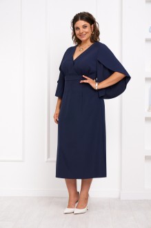 Нарядное женское платье полуприлегающего силуэта, расширенное к низу. По переду втачной пояс, выше линии талии, сборка, запах. По среднему шву спинки вверху разрез. Рукав втачной, расширенный к низу с запахом. В левом боковом шве потайная молния.