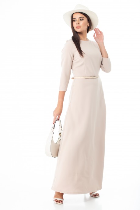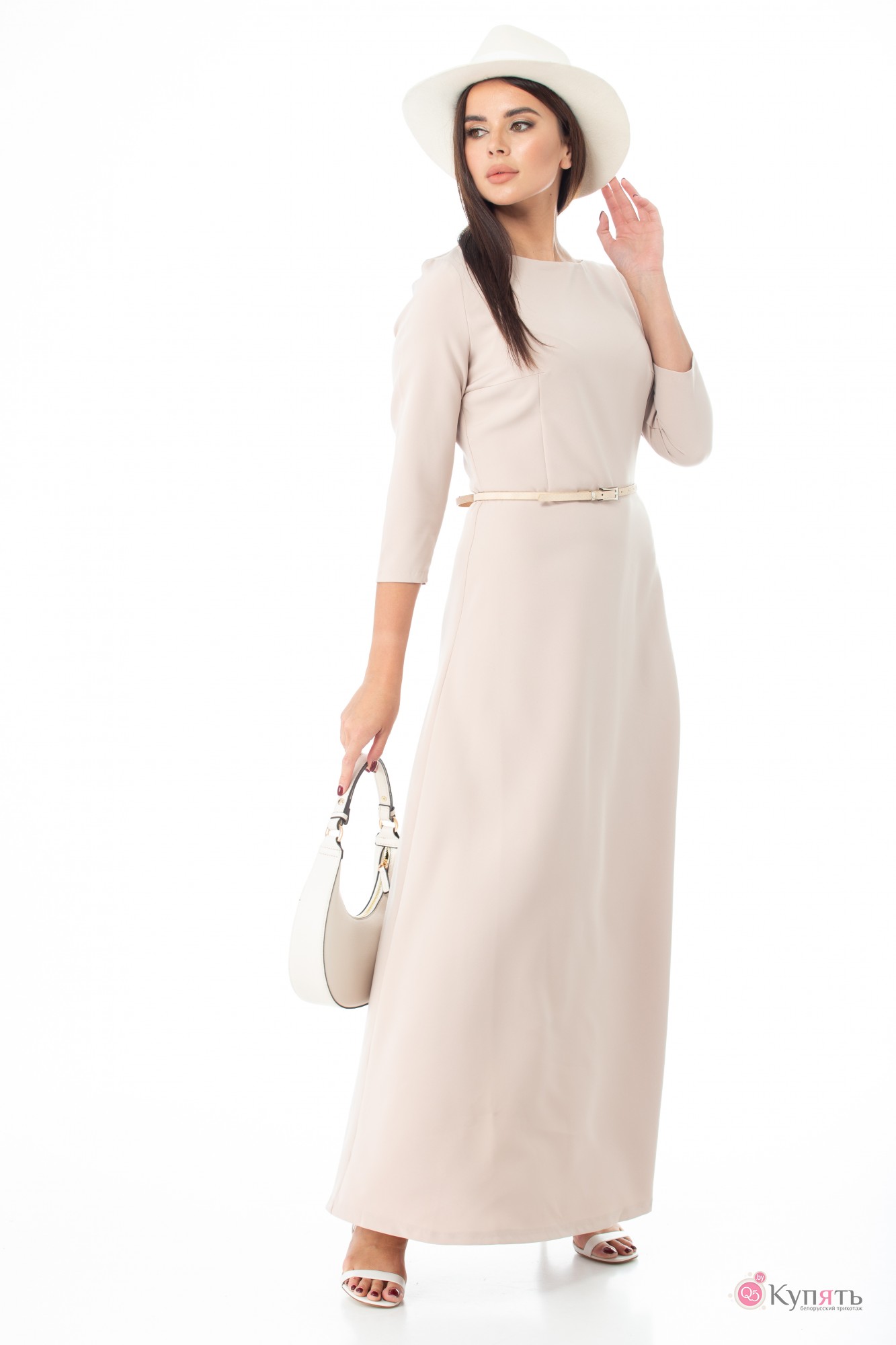 Лаконичное платье длины макси из плательной ткани. Платье полуприлегающего силуэта, отрезное по линии талии. На передней части лифа платья обработаны нагрудные и талиевые вытачки. На спинке обработаны таллиевые вытачки, спинка со средним швом. В боковом шве обработана потайная застежка-молния. Нижняя часть платья умеренно расклешенная. Рукава втачные, длиной 3/4. Вырез горловины – элегантная лодочка. Дополняется съемным поясом в тон платья. Подобрав правильные аксессуары платье послужит как для выхода в свет и так же может стать повседневной моделью для каждого дня.