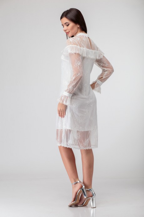 Кокетки по переду и спинке с воланом демонстрируют линию плеч и придают хрупкость образу.