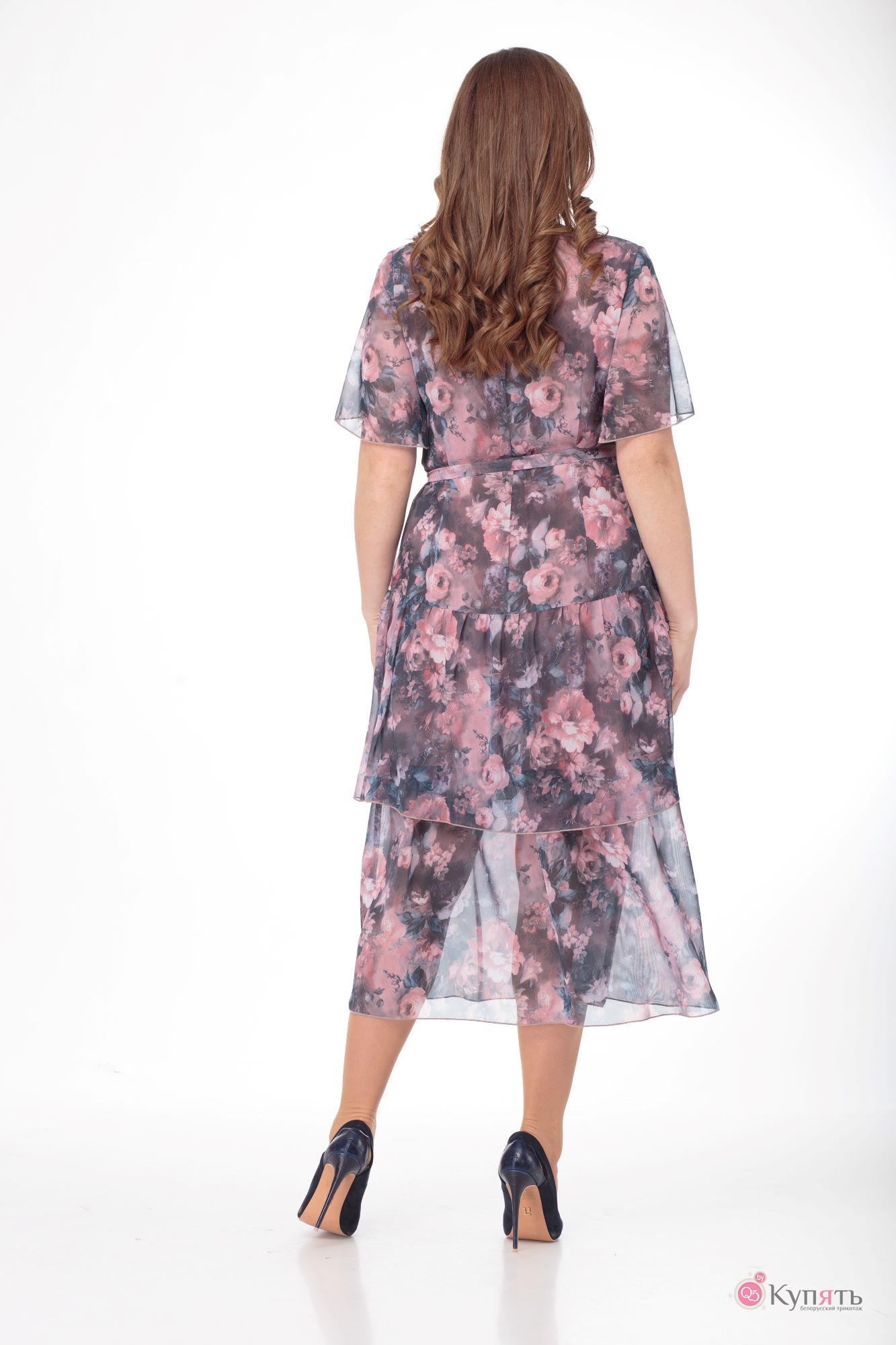 Невесомое платье из принтованного шифона длиной ниже колена подчеркнет вашу женственность. Платье свободного силуэта, расширенного к низу. Нижняя часть платья выполнена в виде ярусов, которая при движении красиво драпируется, придаёт лёгкость походке. Талия мягко подчеркивается съёмным поясом из основной ткани. Рукава-крылышки длиной до локтя не стесняют движения и хорошо дополняют образ.