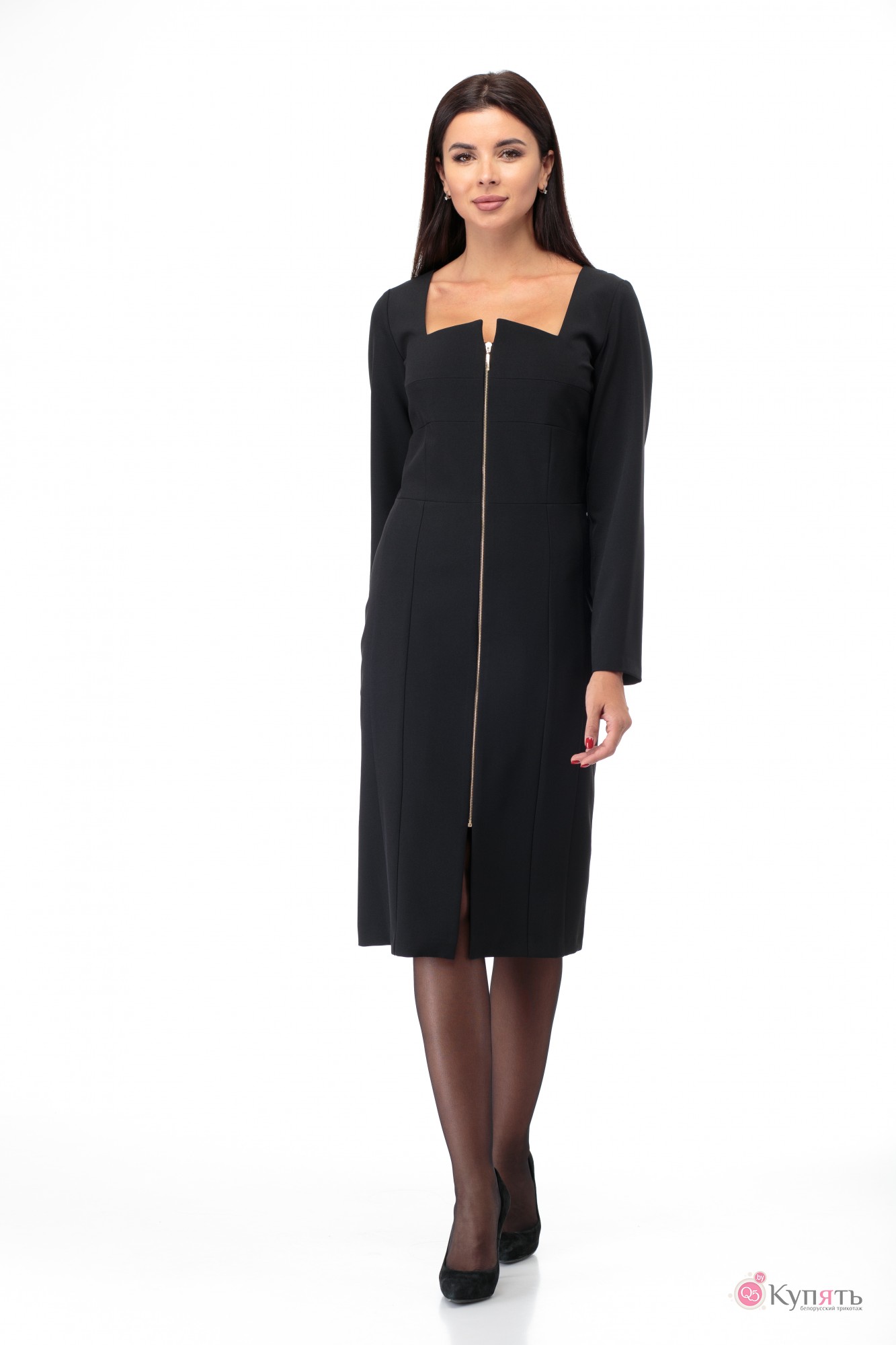Платье полуприлегающего силуэта, длиной ниже колена, отрезное по линии талии.
