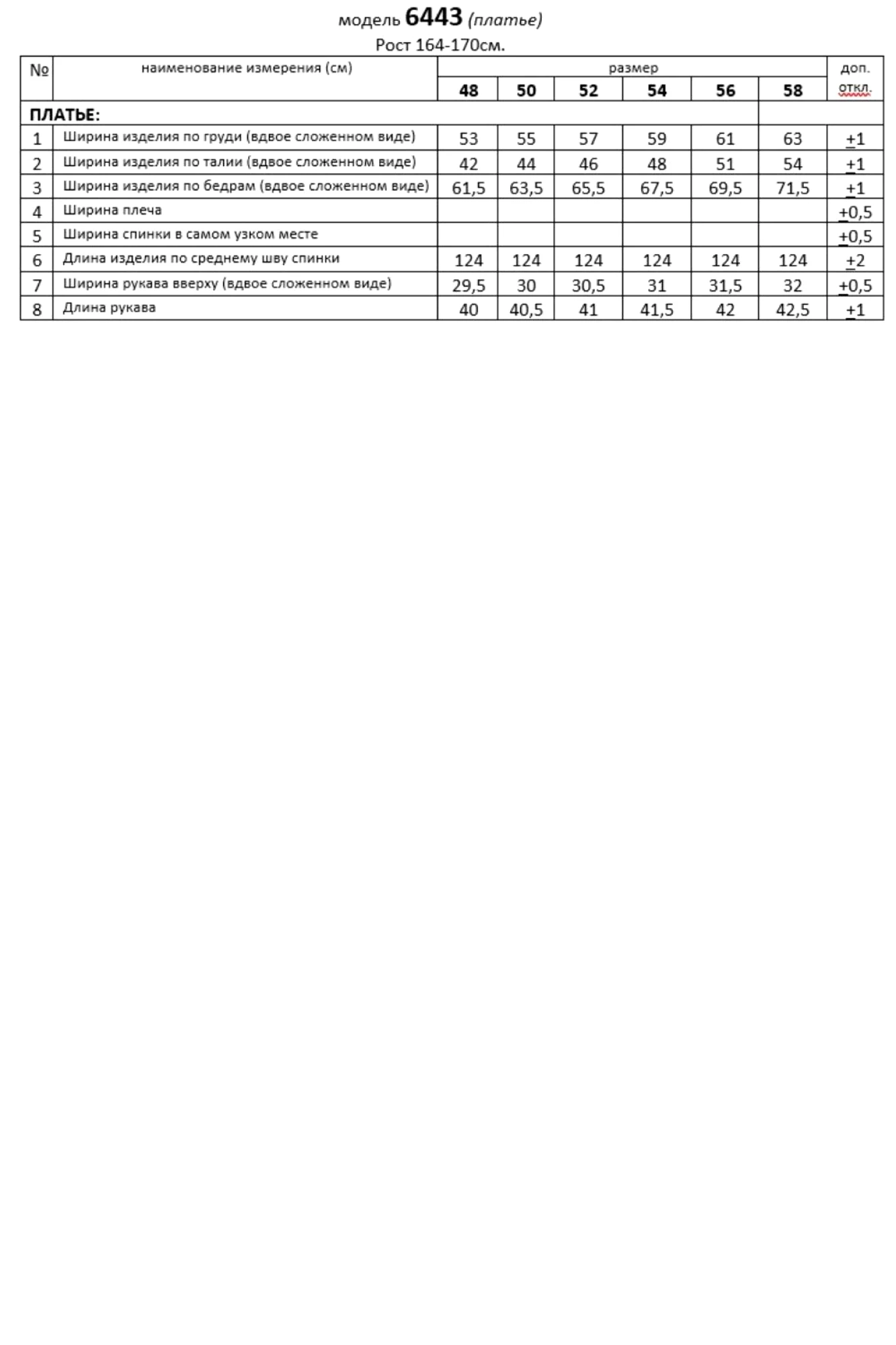 Таблица размеров
