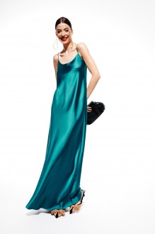 Платье-комбинация женское, крой по косой, полуприлегающего силуэта, длиной до линии щиколотки. Платье на тонких регулируемых бретелях. Вырез горловины округлой формы.