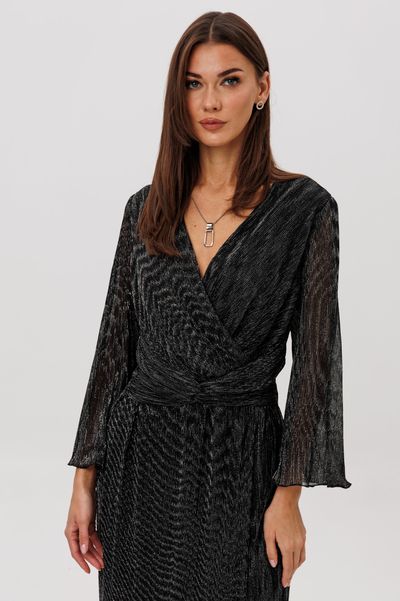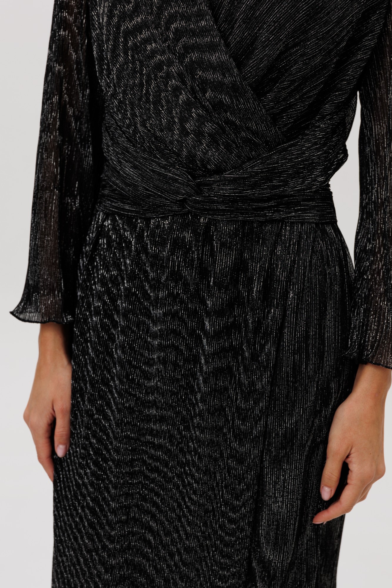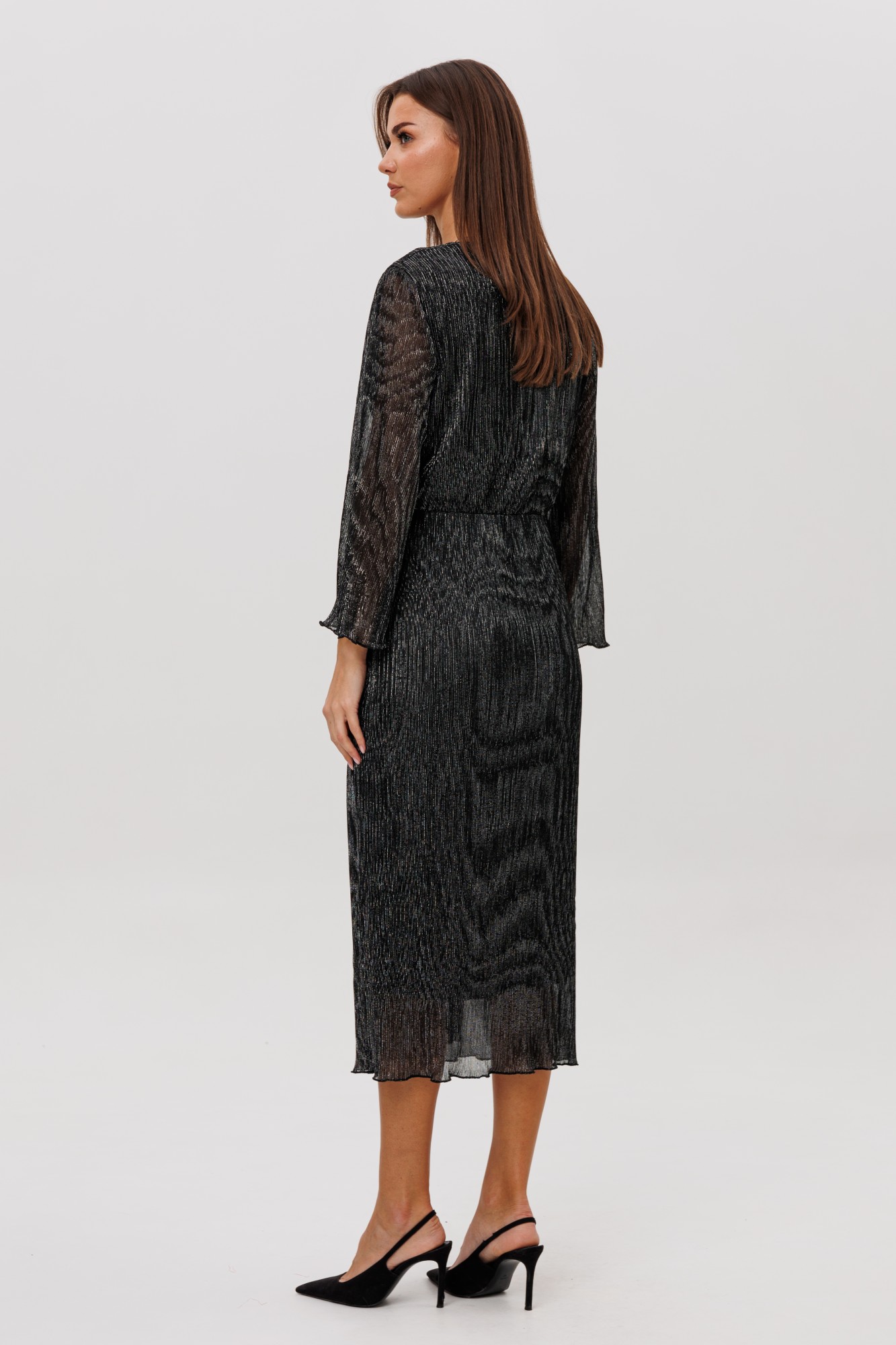 Очарование и красота девушки любого возраста засияют еще ярче, если выбрать для нарядного образа изысканное вечернее платье. Женственный силуэт, подчеркивающий линию талии, и невероятная фактура гофрированного полотна делают эту модель не только изысканно-красивой, но и мега удобной. Полуприлегающий силуэт, втачной покрой, рукав длиной 7/8, отрезной лиф с запахом, юбка с запахом по переднему полотнищу. По линии талии по переду акцентная драпирующаяся деталь-перевертыш. По линии талии на спинке-эластичная тесьма.