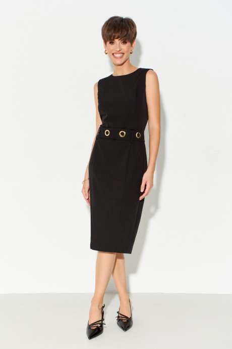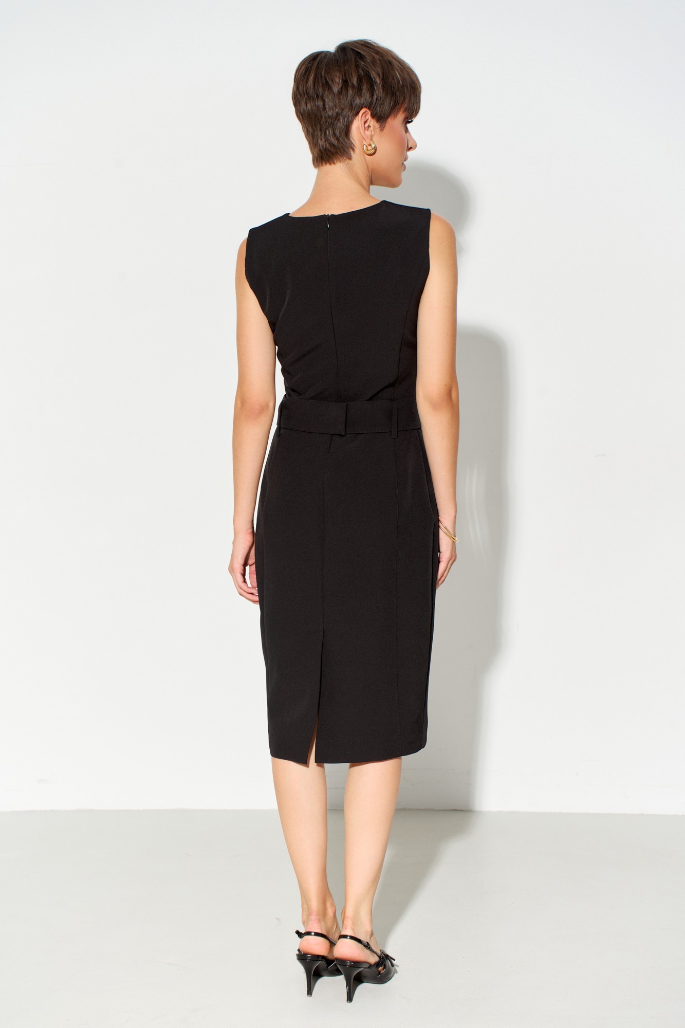 Классическое платье-чехол без рукавов на трикотажной тянущейся подкладке выполнено из плательной ткани. По переду и спинке вертикальные рельефы выходят из пройм; по спинке - застежка на молнию; по низу - шлица. В комплекте предусмотрен съёмный пояс с люверсами, который легко вставляется в аккуратно настроченные шлёвки по линии талии, добавляя образу стильный акцент. Платье полностью соответствует заявленному размеру. Пожалуйста, пользуйтесь таблицей обмеров готового изделия. Уход за тканью: - стирка при низких температурах и использование мягких моющих средств для сохранения структуры и мягкости; - пояс стирать в стиральной машине не рекомендуется.
