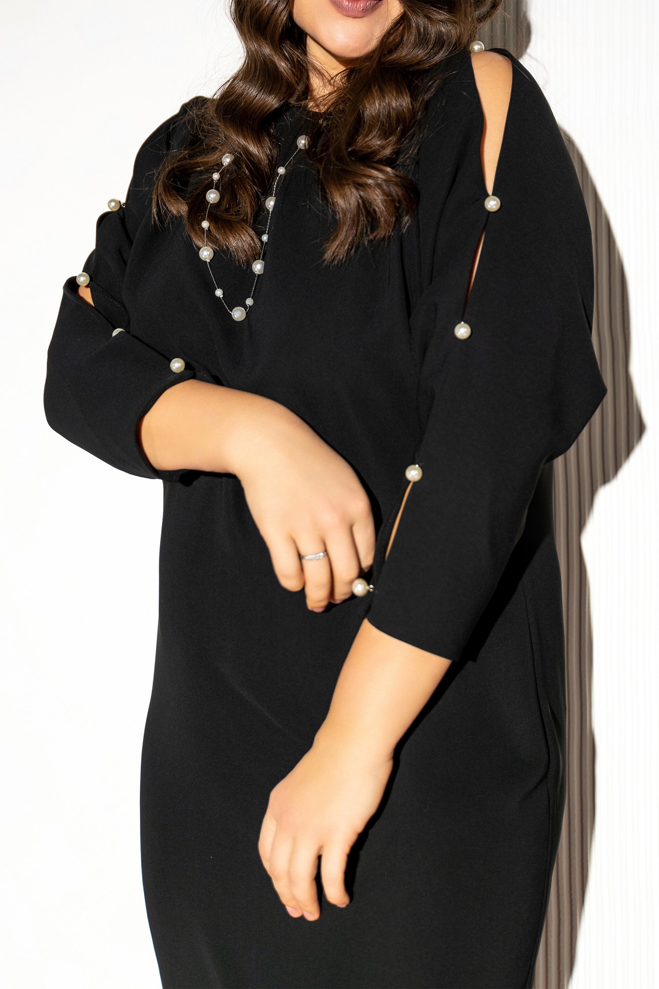 Платье женское для любых торжественных мероприятий, в нем вы всегда в центре внимания. Платье женское кроя летучая мышь , прямого силуэта вырез горловины лодочка, по разрезам рукавов пришиты жемчужины. Спинка со средним швом, в верхней части обработана застёжка на пелю и пуговицу, по низу обработан разрез.