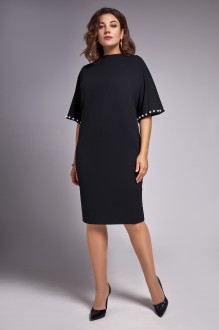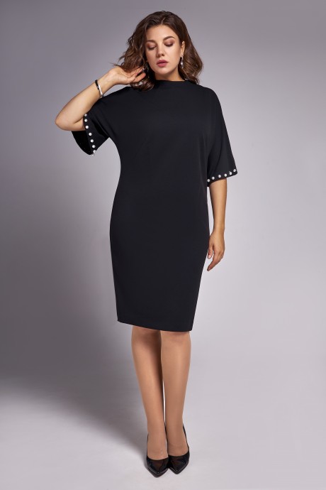 Нарядно-повседневное платье прямого силуэта, рукав цельнокроенный, по спинке застежка-молния, по низу рукавов декоративные бусины-жемчуг.