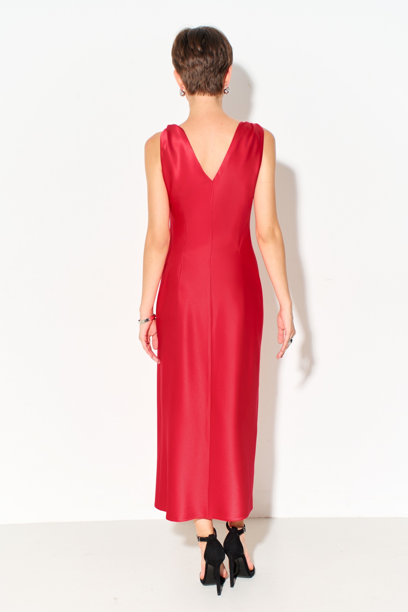 Платье - комбинация длины миди полуприлегающего силуэта выполнено из струящегося шелк - сатина с декоративными регулирующими узлами, в боковой шов вставлена потайная молния. Платье полностью соответствует заявленному размеру. Пожалуйста, пользуйтесь таблицей обмеров готового изделия. Уход: - рекомендуется машинная стирка при температуре не выше 30 градусов; - выбирайте деликатный режим стирки.