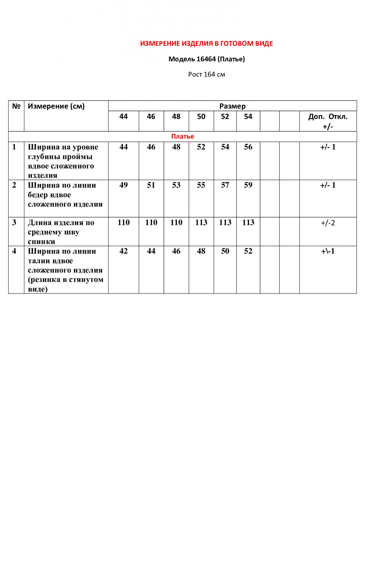 Таблица размеров
