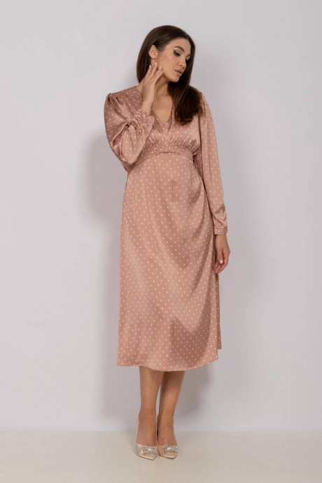 Платье женское свободного силуэта, отрезное по линии талии, выполнено из тонкой плательной ткани.