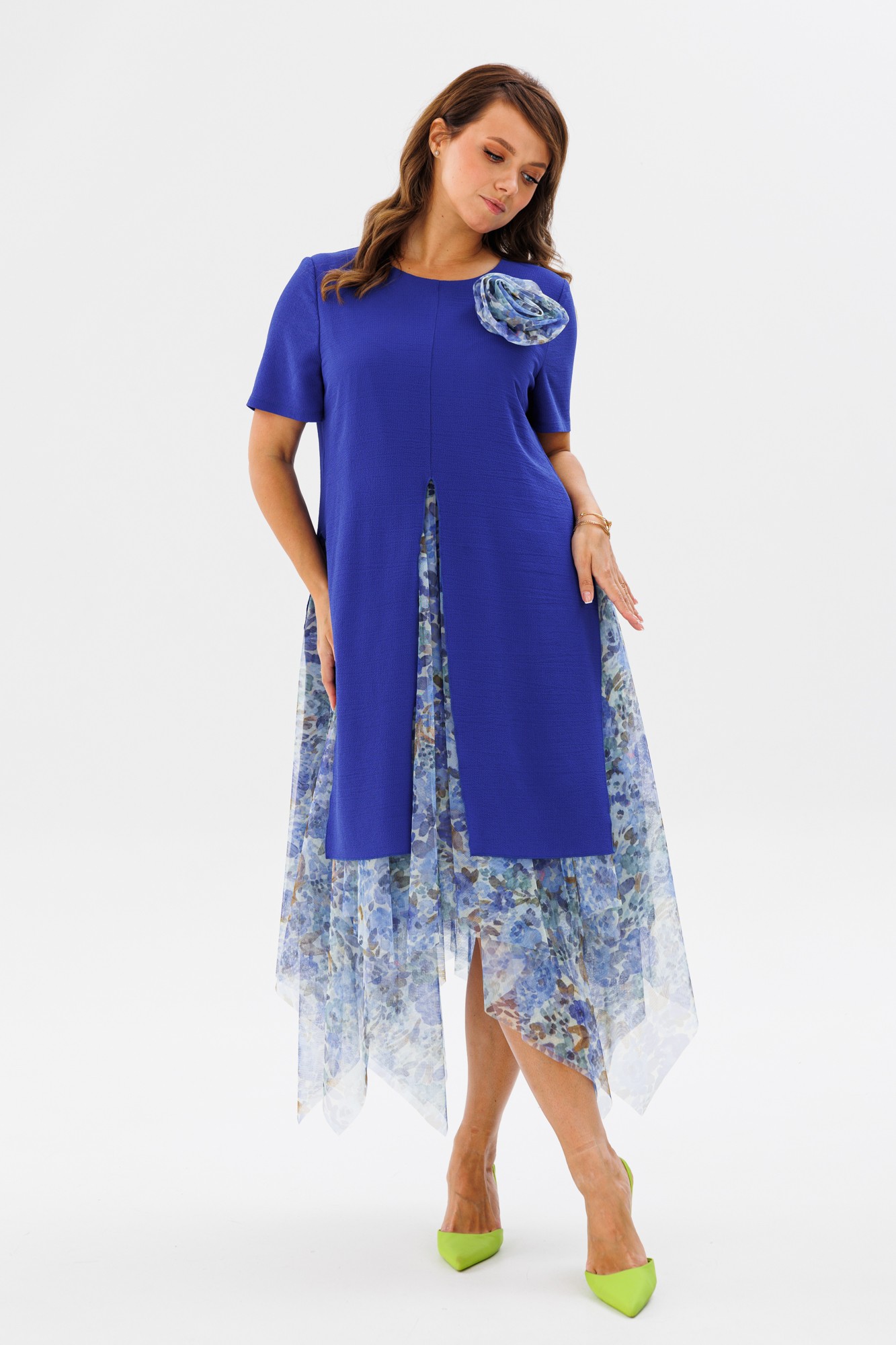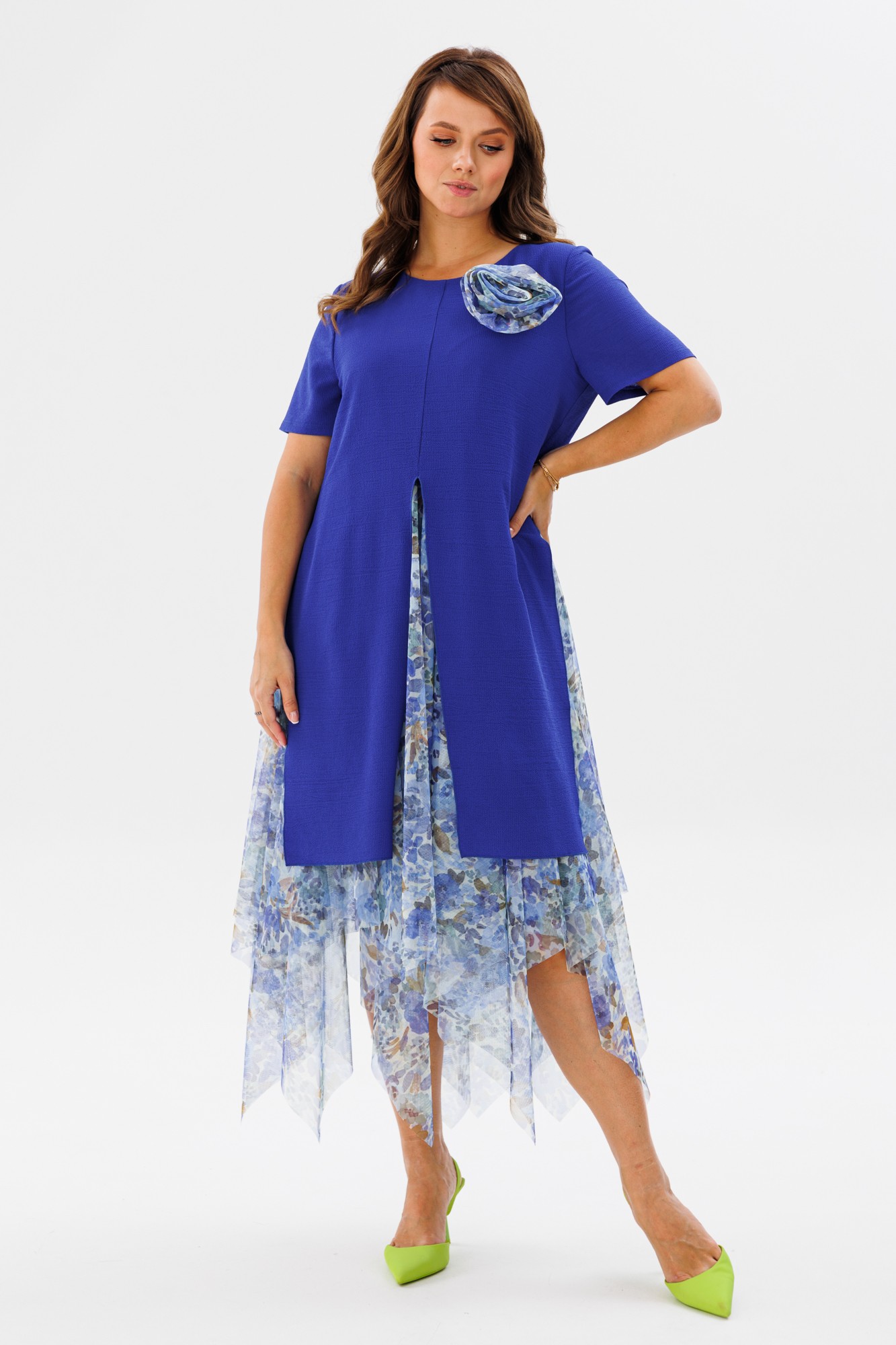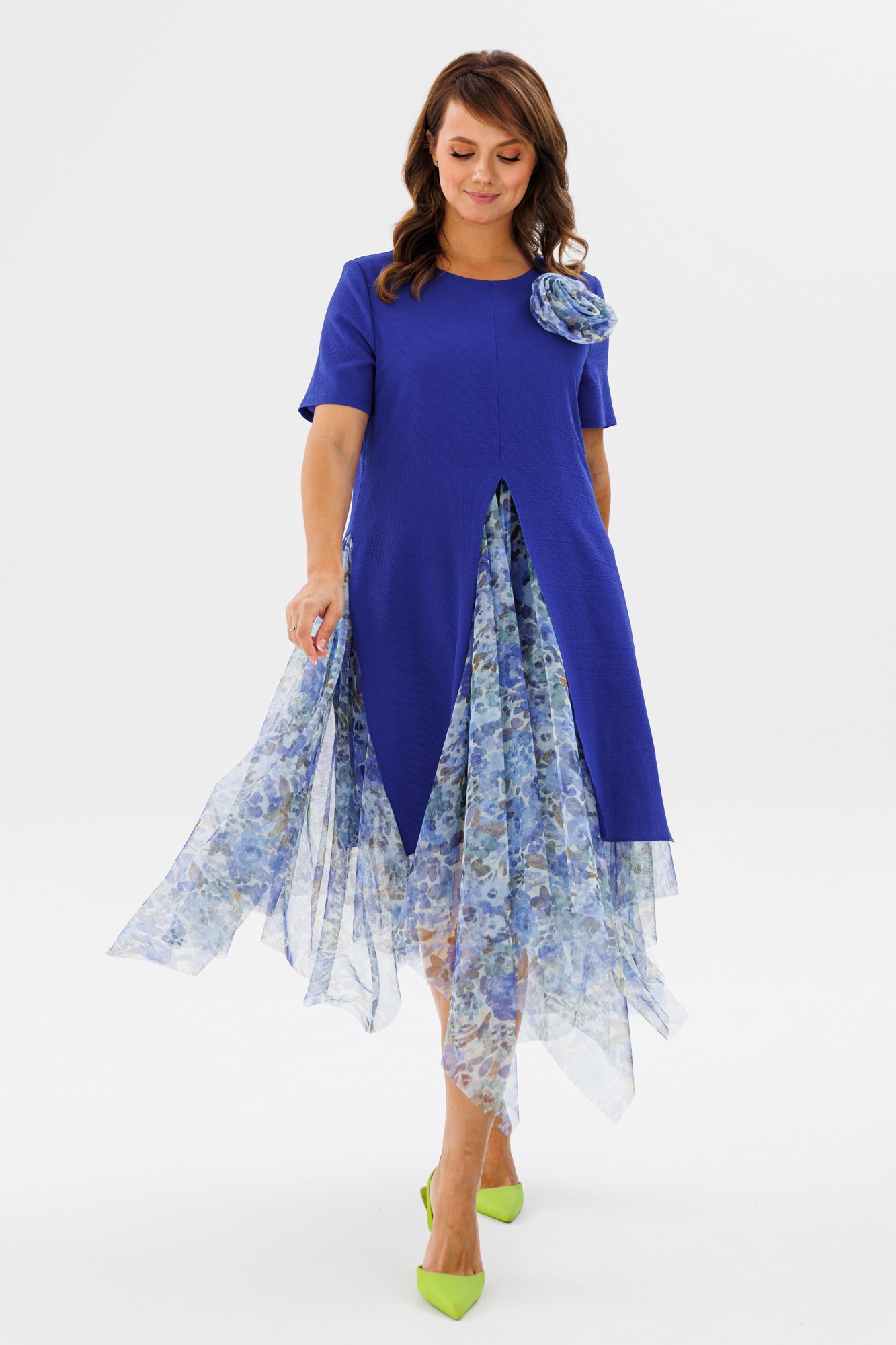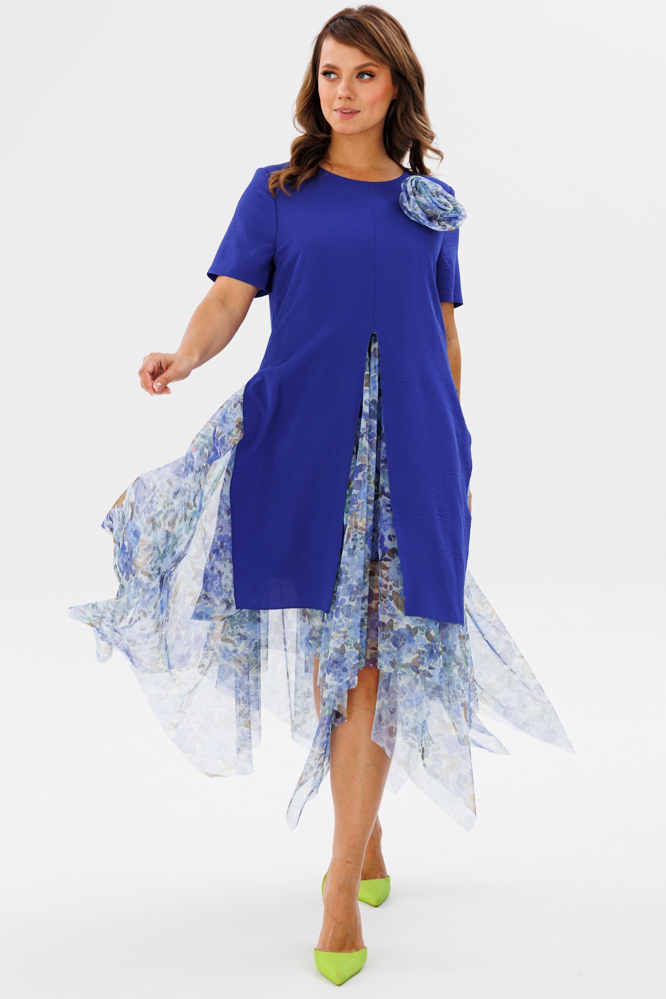 Вечернее платье Мублиз плюс 161 индиго, цветочный принт с ID товара 395603