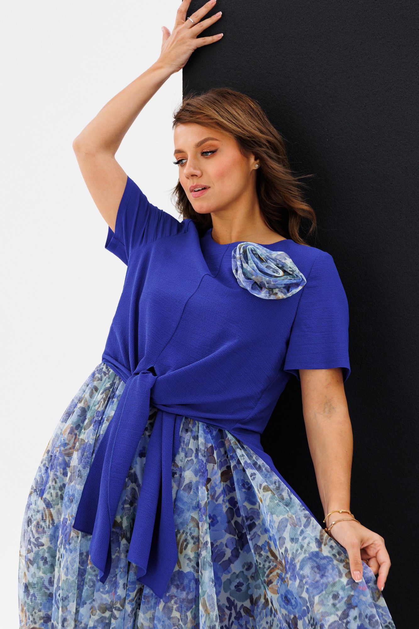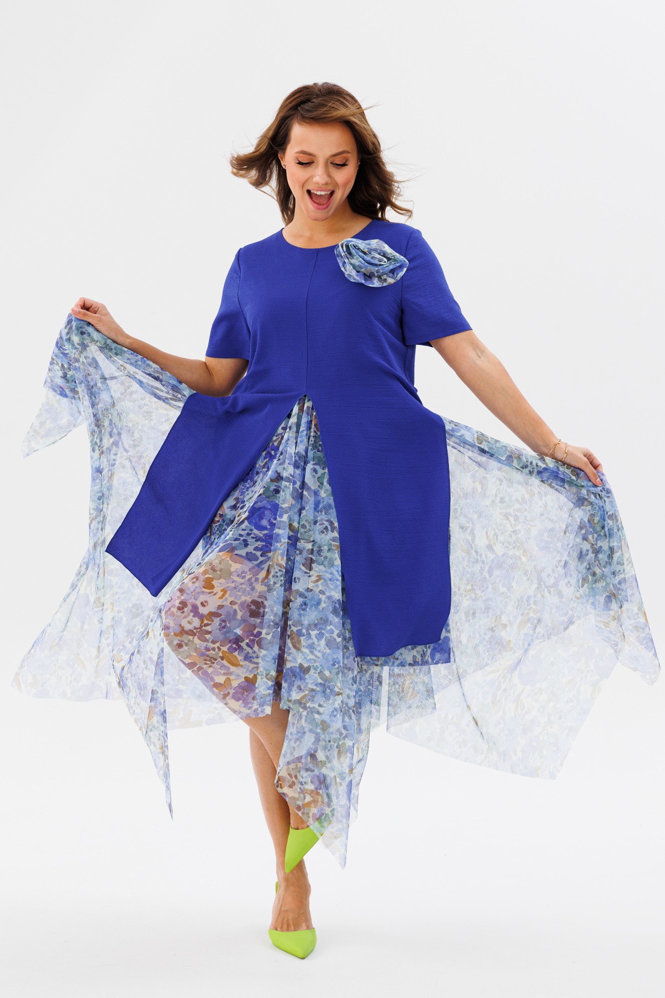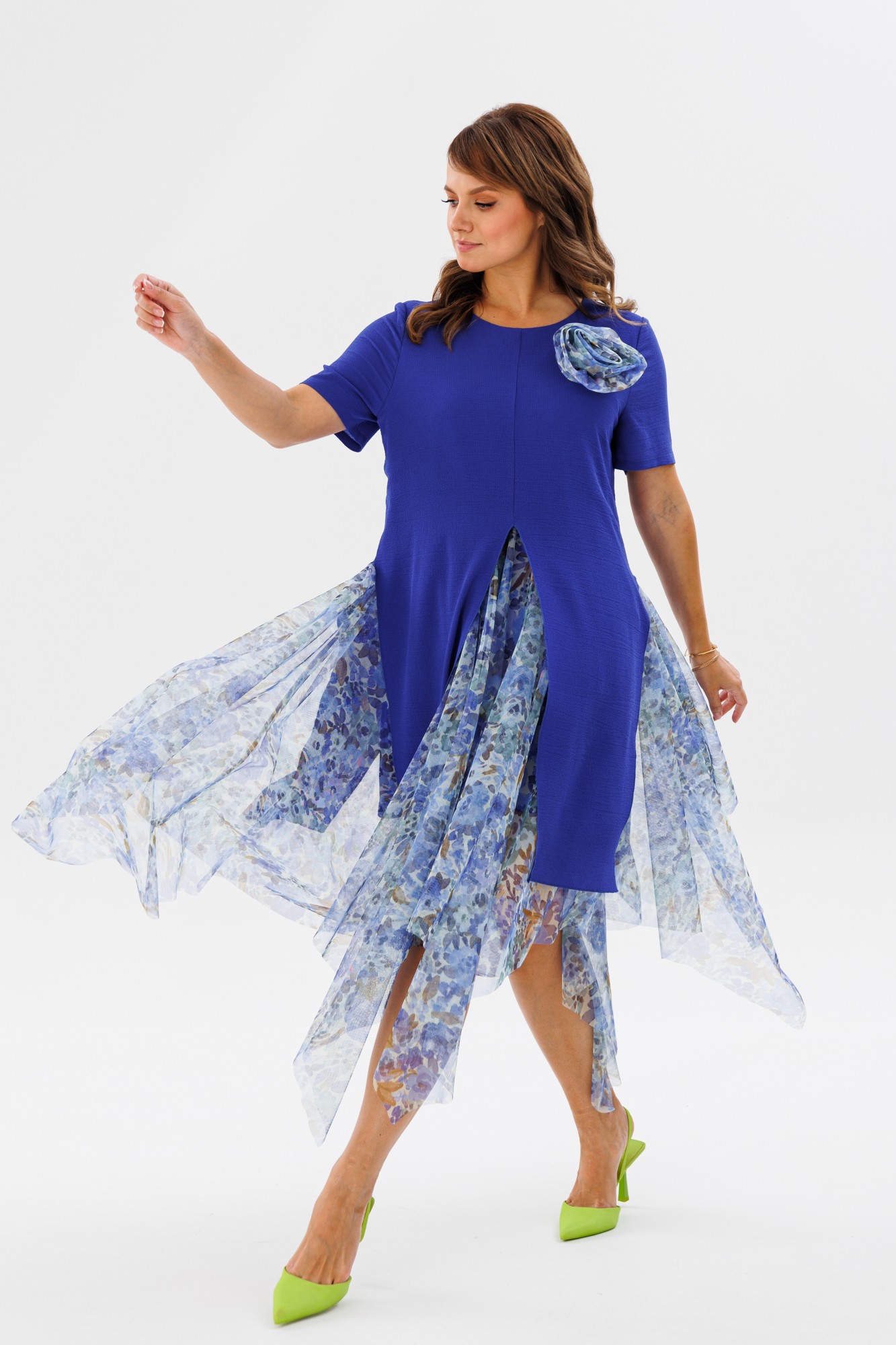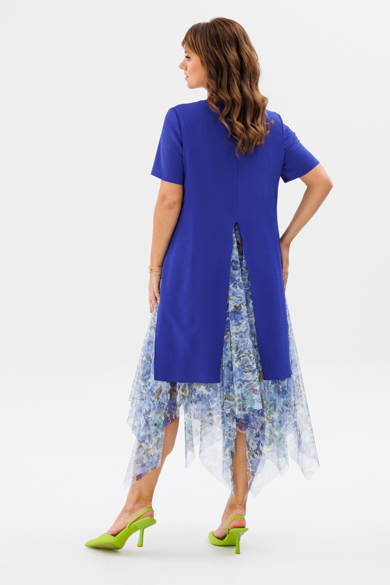 Вечернее платье Мублиз плюс 161 индиго, цветочный принт с ID товара 395603
