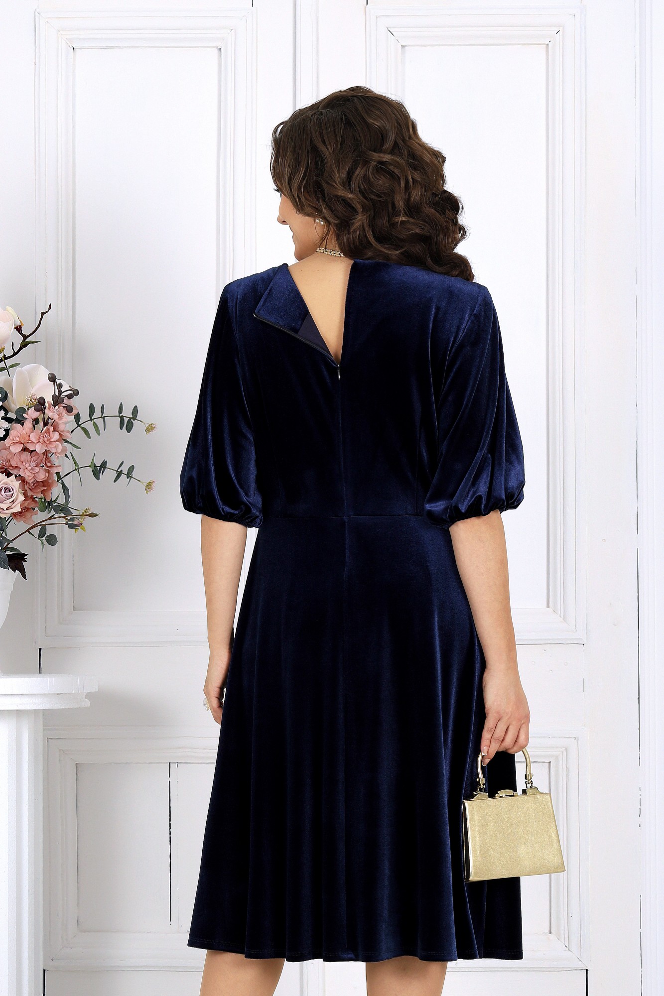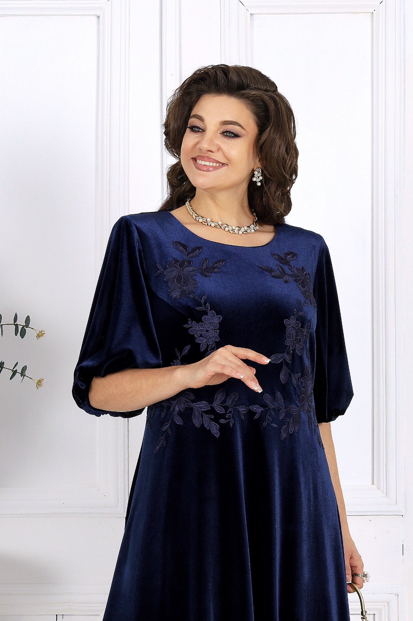 Это не просто наряд — это воплощение элегантности и утончённого вкуса. Мягкий бархатный велюр играет на свету, создавая эффект дорогого сияния, а дизайнерская аппликация подчёркивает статус и делает образ неповторимым. Платье красиво струится по фигуре: полуприлегающий лиф и расклешённая юбка формируют женственный силуэт, а рукава с лёгкой сборкой добавляют романтичности. Каждая деталь продумана — от изящной посадки до удобной скрытой застёжки. В таком платье вы будете блистать на новогоднем вечере, корпоративе или любом праздничном событии. Это наряд, который не оставит равнодушным и станет вашей визитной карточкой стиля. Платье женское, выполнено из трикотажного полотна «велюр». Модель на трикотажной подкладке, с плечевыми накладками и застежкой на потайную тесьму-«молнию» (50 см) в среднем шве спинки. Платье отрезное по линии талии, с лифом полуприлегающего силуэта и расширенной к низу юбкой. Лиф с нагрудными вытачками по переду и талиевыми по спинке. От горловины лифа вниз, переходя на юбку, настрочены симметричные аппликации. Рукав втачной, трехчетвертной; низ сосборен эластичной лентой.