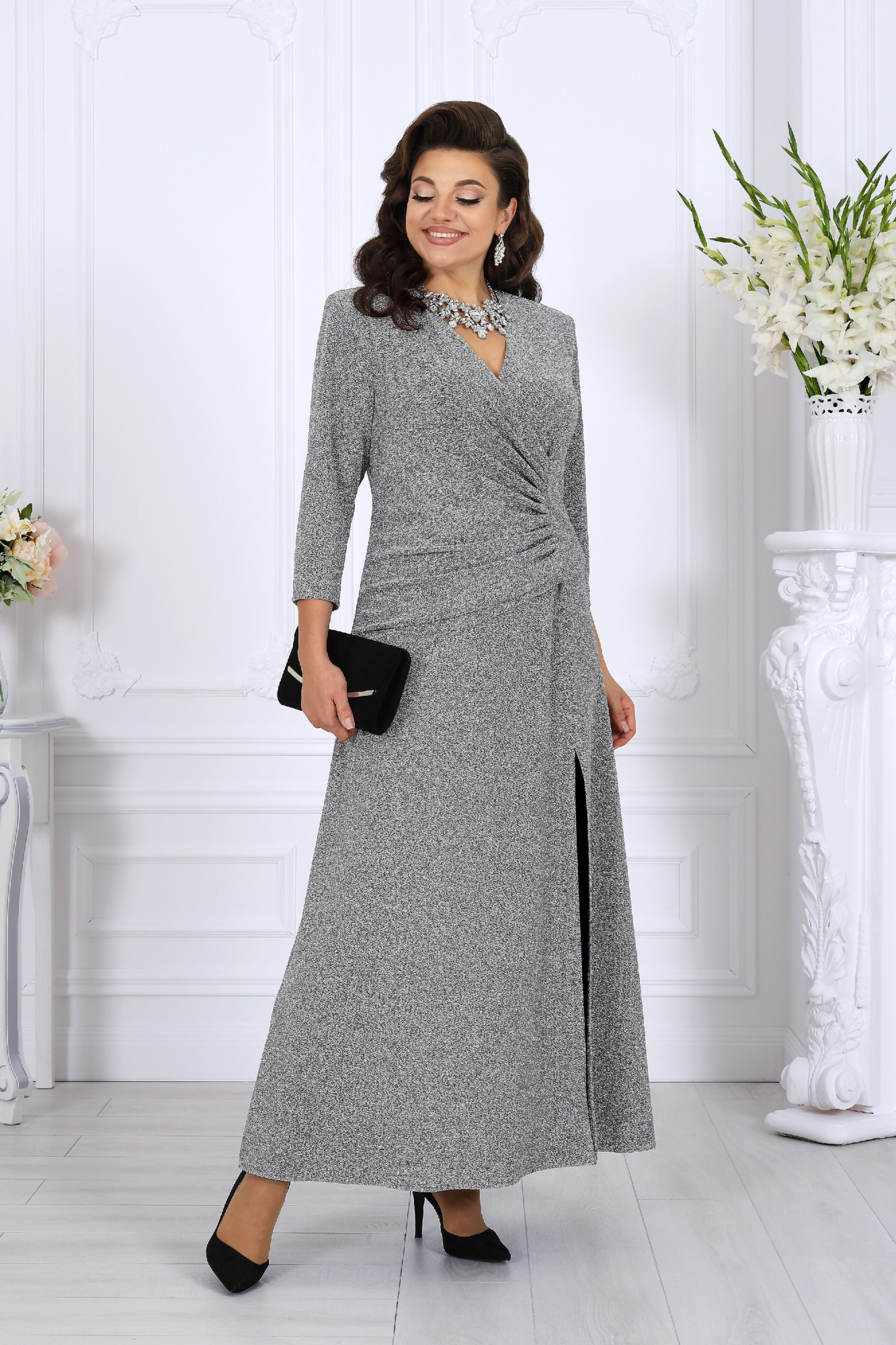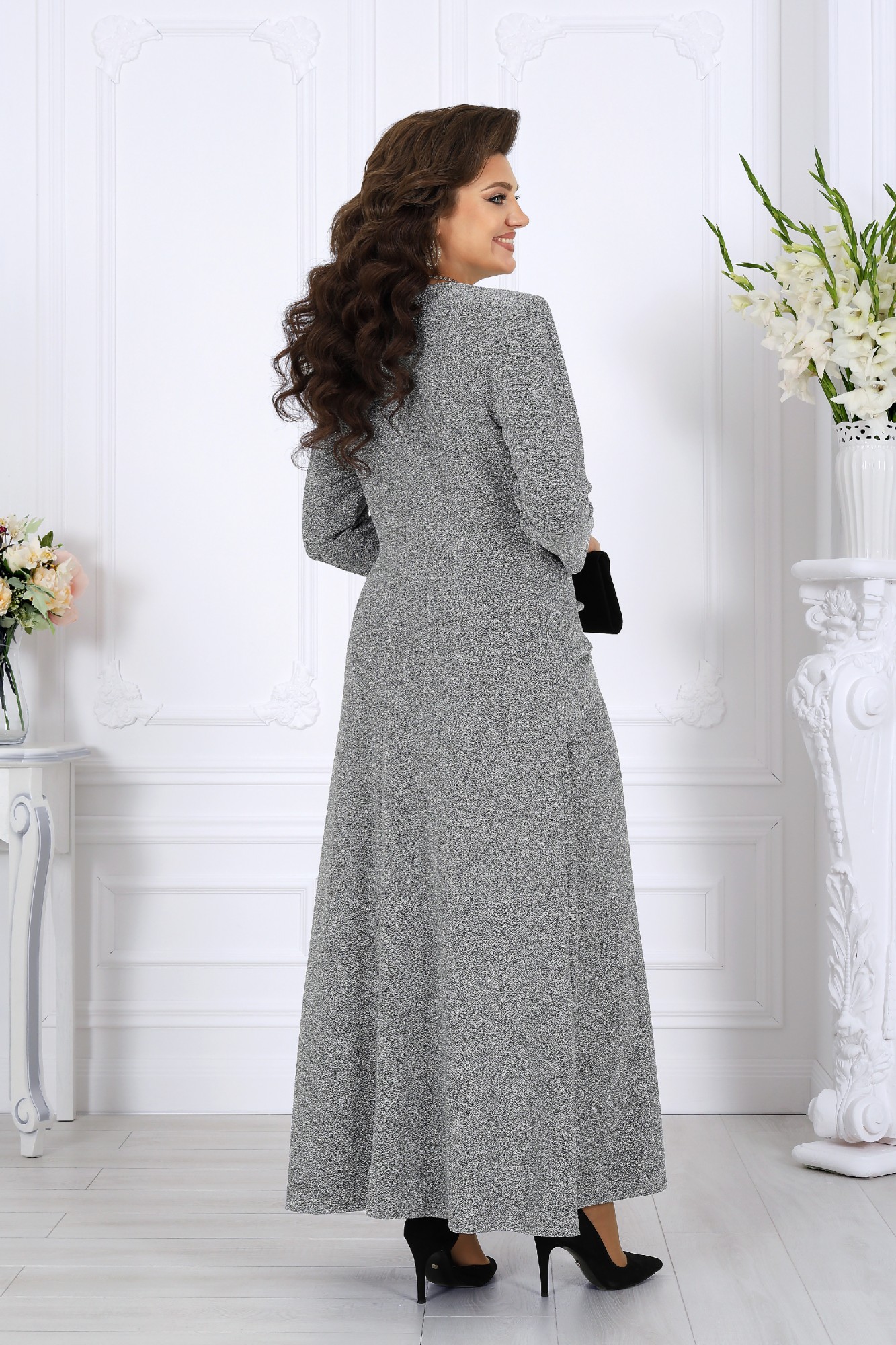 Элегантное вечернее платье из люрекса — создано для особенных событий. Изысканное длинное платье, которое подчеркивает женственность и утонченность. Выполнено из благородного трикотажного полотна с мерцающим люрексом — ткань мягко драпируется, не сковывает движения и эффектно играет при каждом шаге. Асимметричный перед с запахом и деликатными драпировками визуально стройнит и формирует правильный силуэт для женщин с формами. Глубокий разрез добавляет образу легкой смелости, оставаясь элегантным и уместным на торжественных мероприятиях. Платье женское, расширенное к низу, выполнено из трикотажного полотна с фактурной лицевой стороной «люрекс». Модель на трикотажной подкладке, с плечевыми накладками. Перед платья асимметричный, состоит из двух деталей, скрепленных на запах. На левой детали переда обработан рельефный шов с разрезом по низу. Правая деталь переда задрапирована сборкой и входит в рельеф на участке между двумя горизонтальными подрезами боковой части переда. На спинке обработаны таллиевые вытачки и средний шов с застежкой на потайную тесьму-«молнию» (50 см). Рукав трехчетвертной.