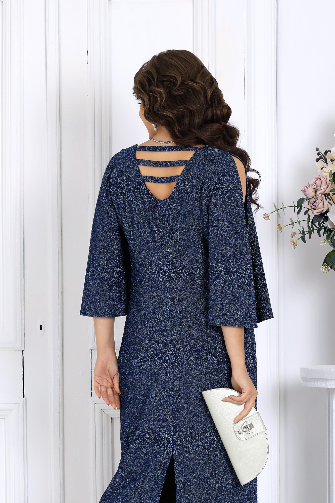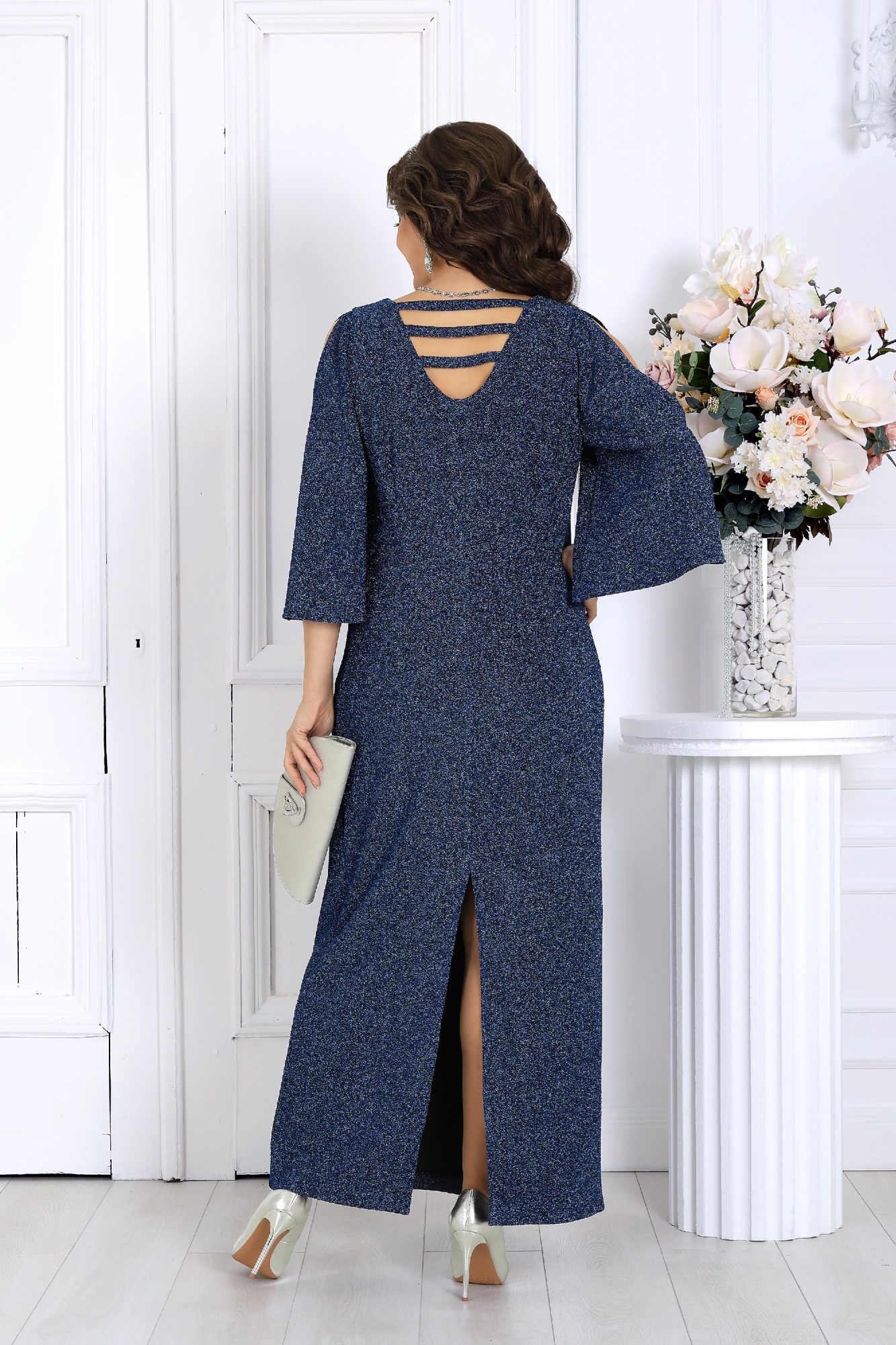 Это длинное вечернее платье из ткани с люрексом создано, чтобы подчеркнуть вашу женственность и уверенность. Блестящее трикотажное полотно мягко играет при каждом движении, не сковывая и красиво струясь по фигуре. Благодаря полуприлегающему силуэту и трикотажной подкладке, модель обеспечивает идеальную посадку на фигуре и комфорт на протяжении всего вечера. Рукава 3/4 с изящными разрезами «капля» открывают плечи, придавая образу лёгкость и торжественность. На спинке — эффектная деталь: V-образный вырез с декоративными перемычками, подчёркивающий линию плеч и добавляющий утончённости. Разрез сзади делает походку свободной и визуально вытягивает силуэт. Платье идеально подойдёт для любого особенного события — праздника, свадьбы, банкета, новогоднего вечера или торжества. Его можно дополнить элегантными аксессуарами и блестящими туфлями — и вы готовы блистать! Платье женское полуприлегающего силуэта, выполнено из трикотажного полотна с фактурной лицевой стороной «люрекс». Модель на трикотажной подкладке, без застежки и плечевых накладок. Перед платья с нагрудными вытачками, направленными от проймы. Спинка с таллиевыми вытачками и разрезом в нижней части среднего шва. Края V-образной горловины спинки фиксируются тремя перемычками из основного материала; горловина переда круглой формы. Рукав трехчетвертной, расширенный, с вырезом «капля» от плеча.