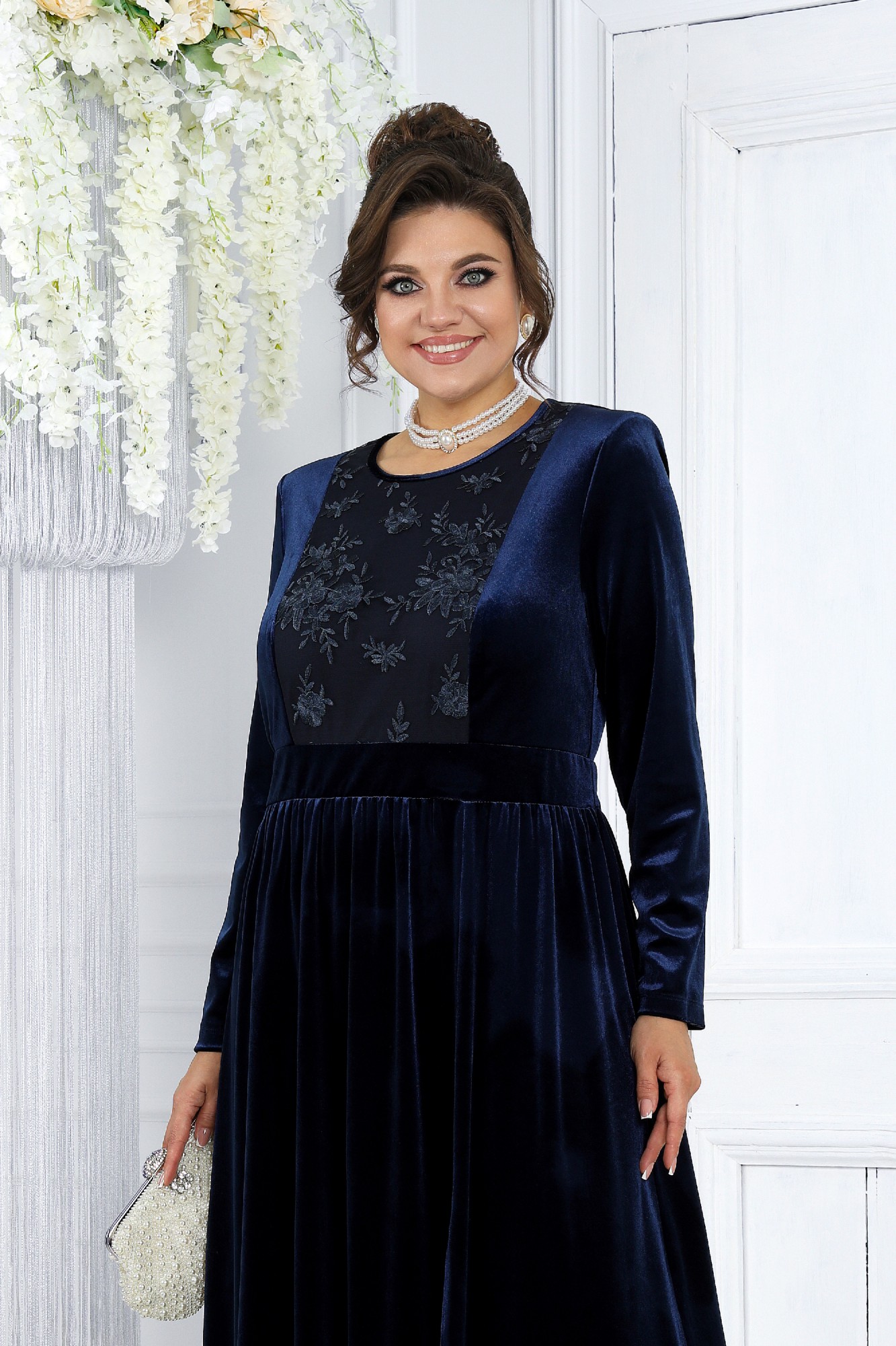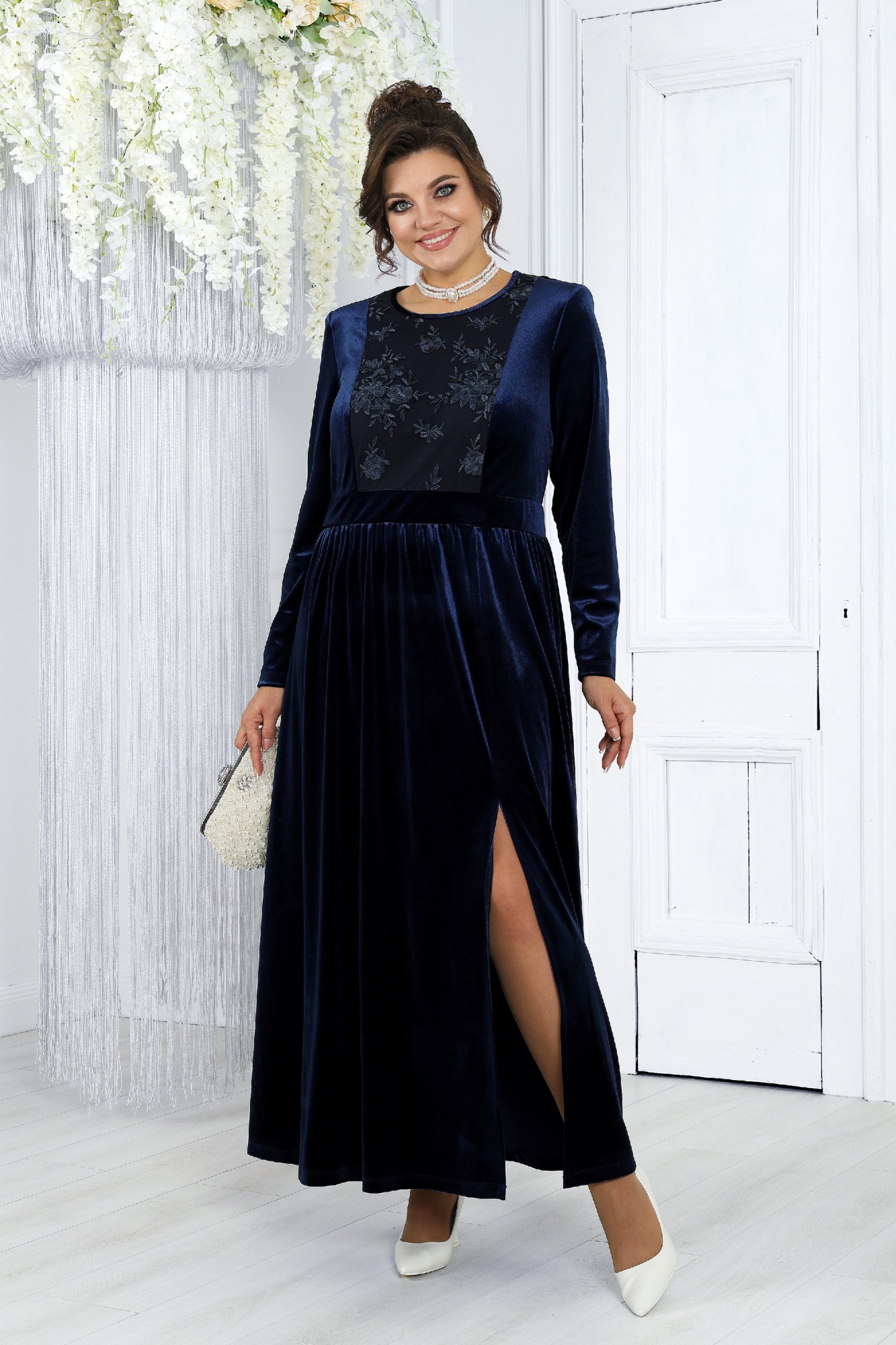 Великолепное вечернее платье из благородного бархата – это воплощение элегантности и стиля для любого торжественного события. Легкое расширение книзу создает красивый силуэт, который подчеркивает женственность и скрывает возможные недостатки фигуры. Бархатное полотно мягко струится по телу, обеспечивая комфорт на протяжении всего вечера. Платье идеально подходит для новогоднего корпоратива, праздничного ужина или торжественного мероприятия. Платье женское полуприлегающего силуэта с расширением к низу, выполнено из трикотажного полотна «велюр». Модель на трикотажной подкладке, с плечевыми накладками. Перед и спинка лифа с рельефными швами, направленными от плечевого шва, и центральными частями, декорированными вторым слоем из гипюра. Юбка с разрезом в левой части переда и сборкой вдоль отрезного пояса. Горловина переда окантована узкой бейкой из велюра, по спинке разъёмная-за счет застежки в среднем шве на тесьму-«молнию» (50 см). Рукав длинный, втачной.