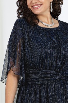 Это изысканное платье приталенного силуэта выполнено из благородной сетки-гофре с мерцающим люрексом, придающим образу праздничное сияние. Трикотажная подкладка обеспечивает комфорт, а отсутствие застежек делает модель удобной и практичной. Драпированный пояс с элегантным перекрутом акцентирует линию талии и добавляет утонченности. Длина платья идеально подойдёт как для торжественных мероприятий, так и для особых случаев, подчеркивая ваш безупречный стиль. Это платье станет вашим незаменимым спутником на праздниках, вечеринках и романтических встречах. Платье женское, приталенного силуэта, выполнено из сетки-гофре с нитью «люрекс». Модель на трикотажной подкладке, без застежки и плечевых накладок. Платье отрезное по линии талии, с полуприлегающим лифом и расширенной к низу юбкой; для лучшего прилегания в области талии на внутренний шов настрочена узкая эластичная лента. Перед дополнен задрапированным поясом с перекрутом, концы которого входят в боковые швы. По плечевым швам, горловине и подрезу талии – сборка. Горловина округлая, окантована узкой косой бейкой из основного материала. Рукав короткий, расширенный, с фигурным низом, переходящим в разрез, края которого по окату скреплены на запах.