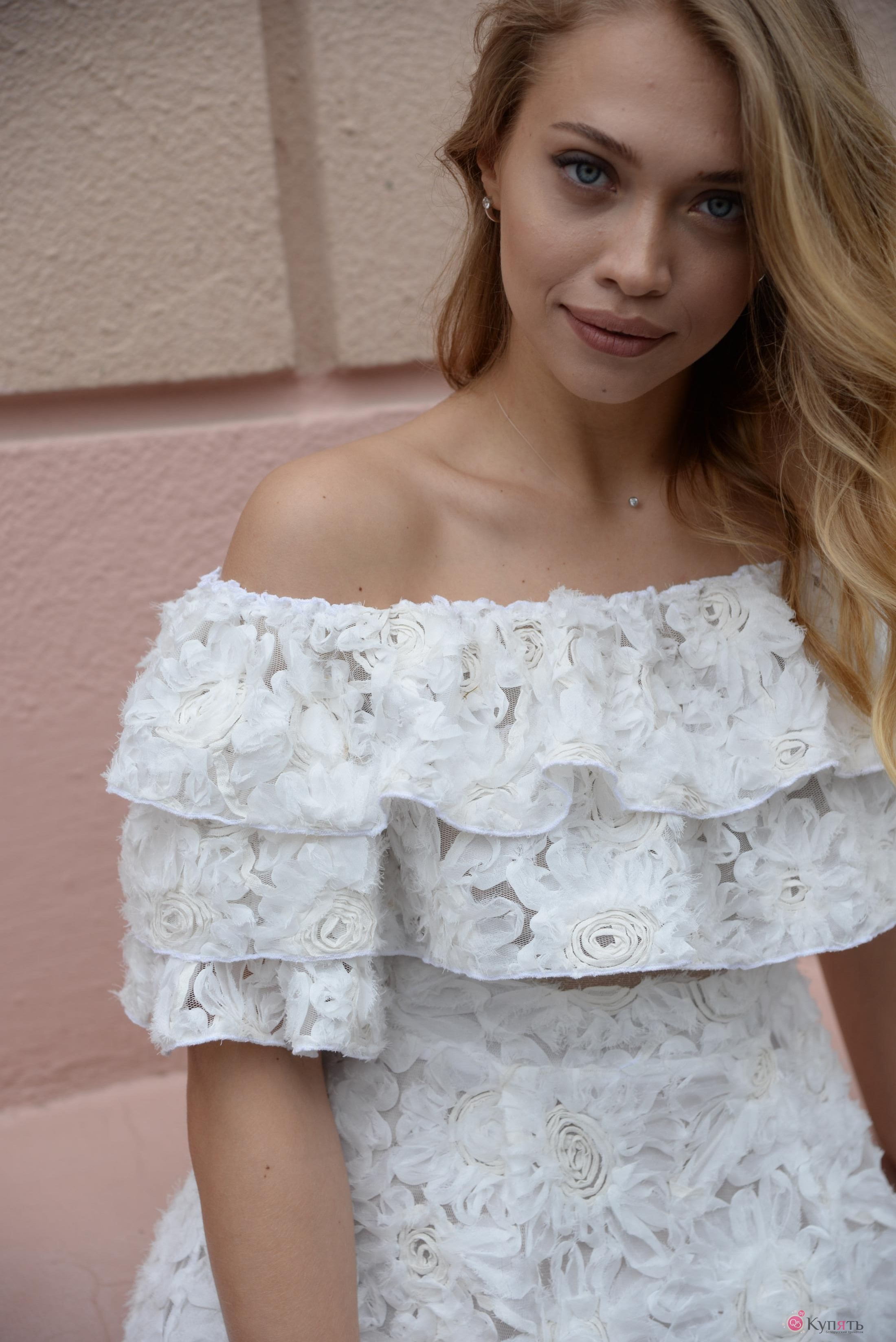 Вечернее платье Sorochinskaya 1311002 без плечиков с 3D-цветами белое