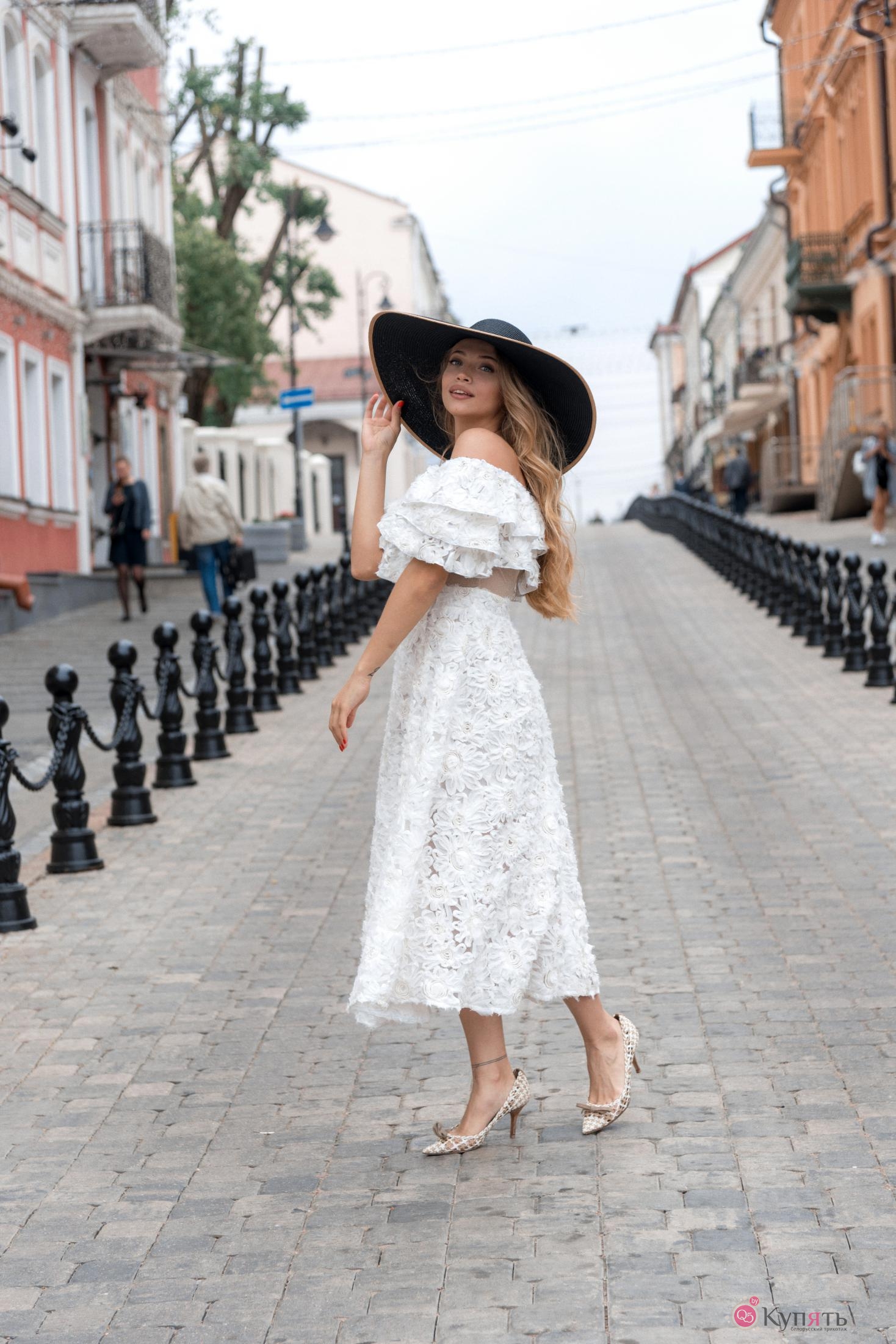 Фантастическое, производящее неизгладимый эффект на всех , кто видит его впервые, и в последующем , кто видит его на Вас! Платье длиной миди с безупречным дизайном кружева на основе хлопока класса люкс ( VALENTINO , PATRIZIA PEPE; PRADA, Италия). Под элегантный каблук - на самое важное событие в жизни, или под стильные кеды -гулять по вечернему городу !