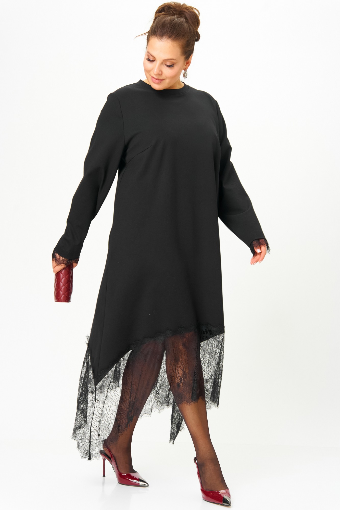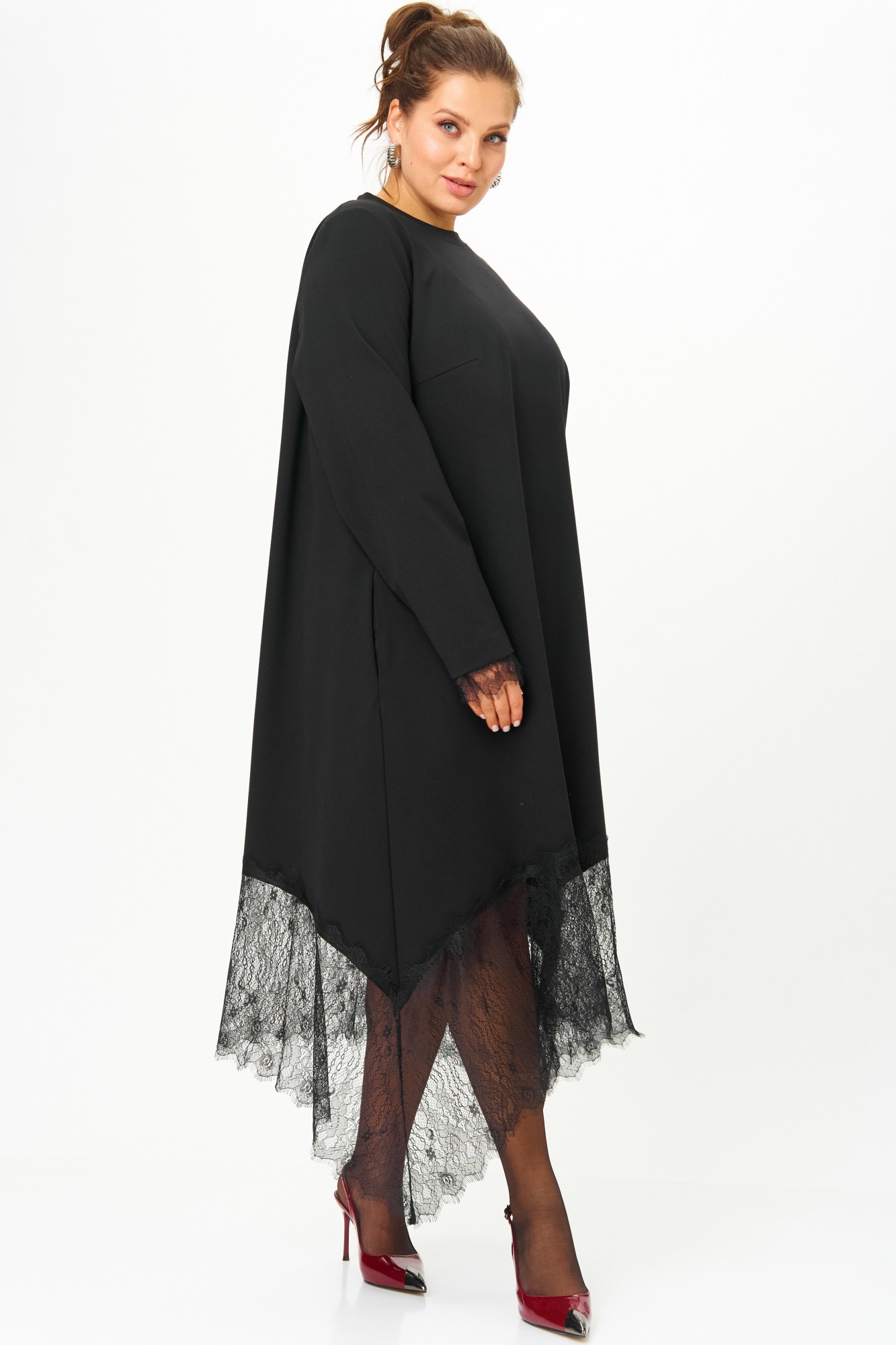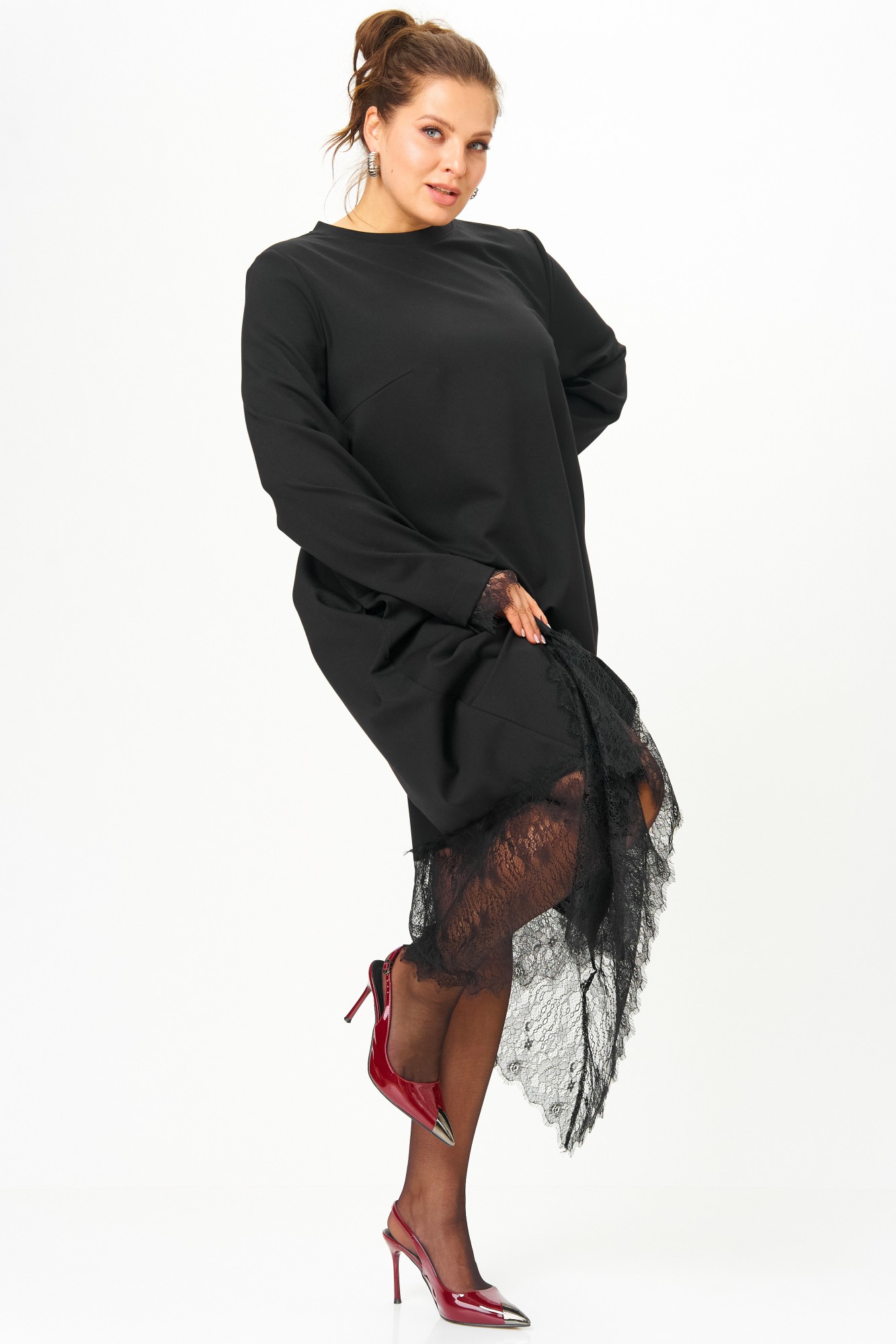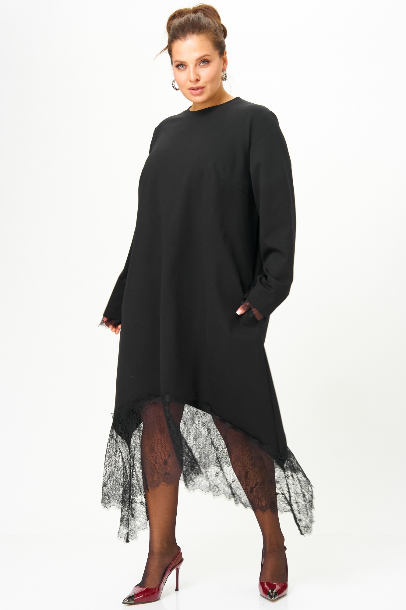 Эффектное платье выполнено из трикотажного полотна. Платье свободного трапециевидного силуэта, длиной макси. Рукав втачной длинный с манжеткой из кружева. В боковых швах имеются функциональные карманы. Низ платья оформлен кружевным воланом. Длинный фасон дает возможность создания стильного образа. Если немножко пофантазировать с обувью получится много стильных и интересных вариантов образа. Ботинки - брутальность и дерзость, туфли -романтичность и сексуальность.