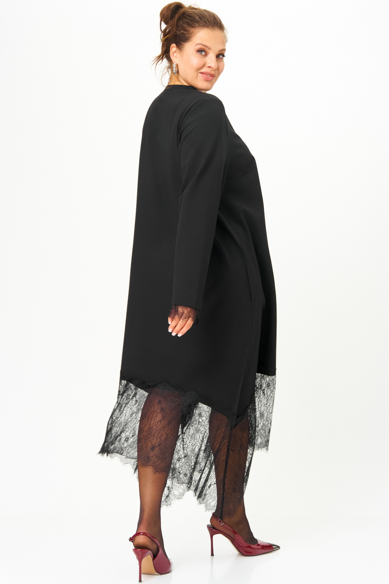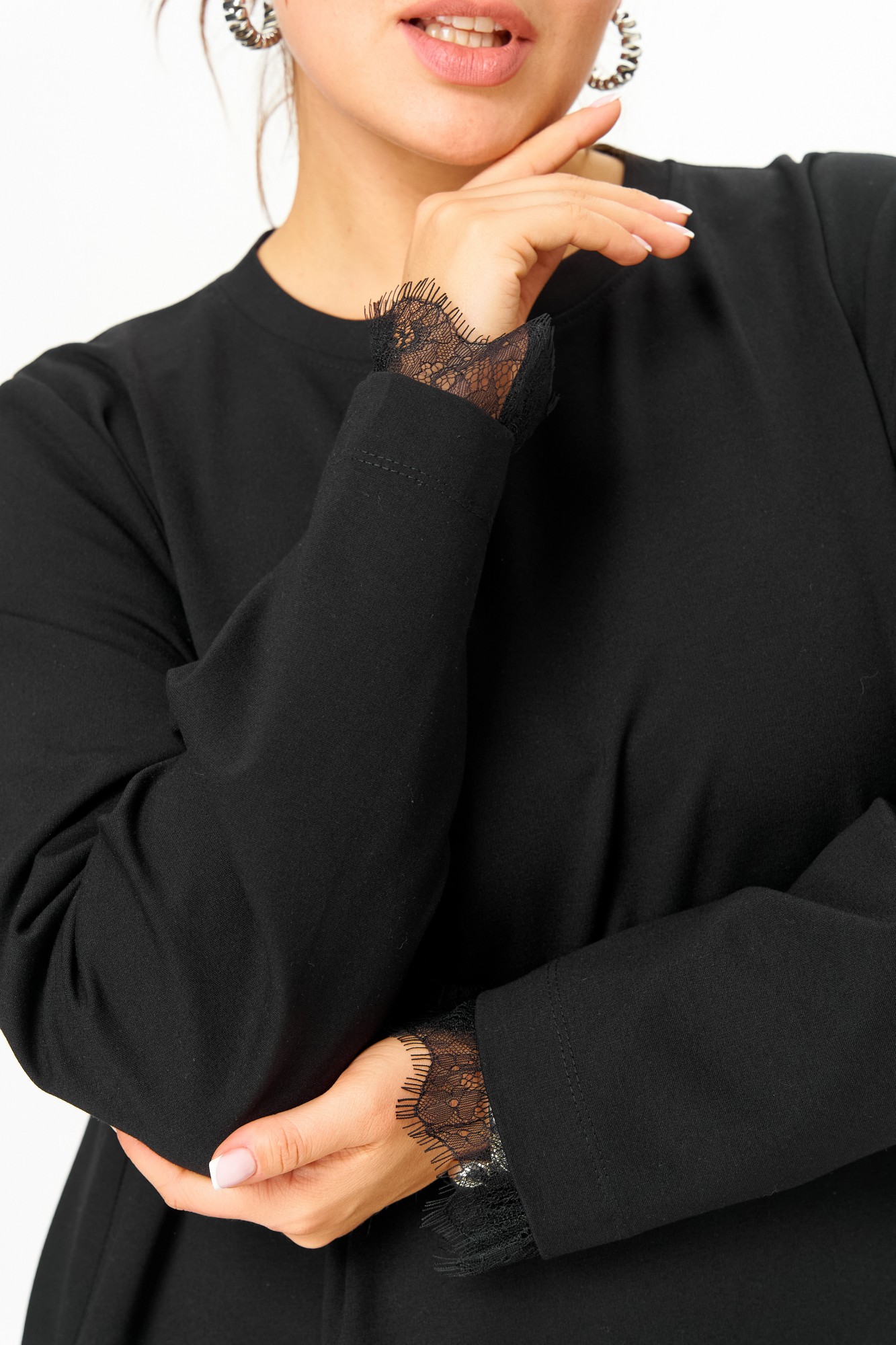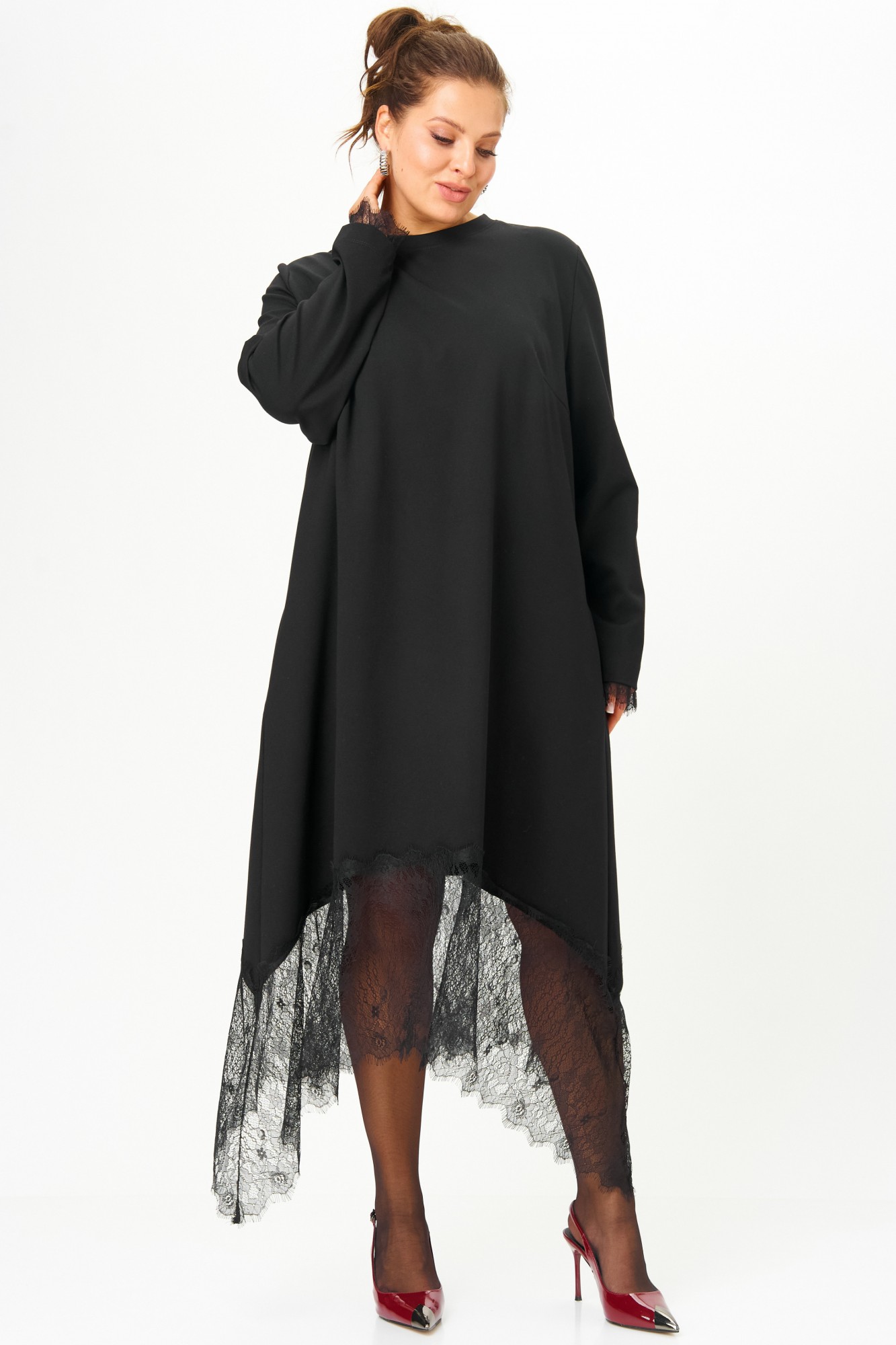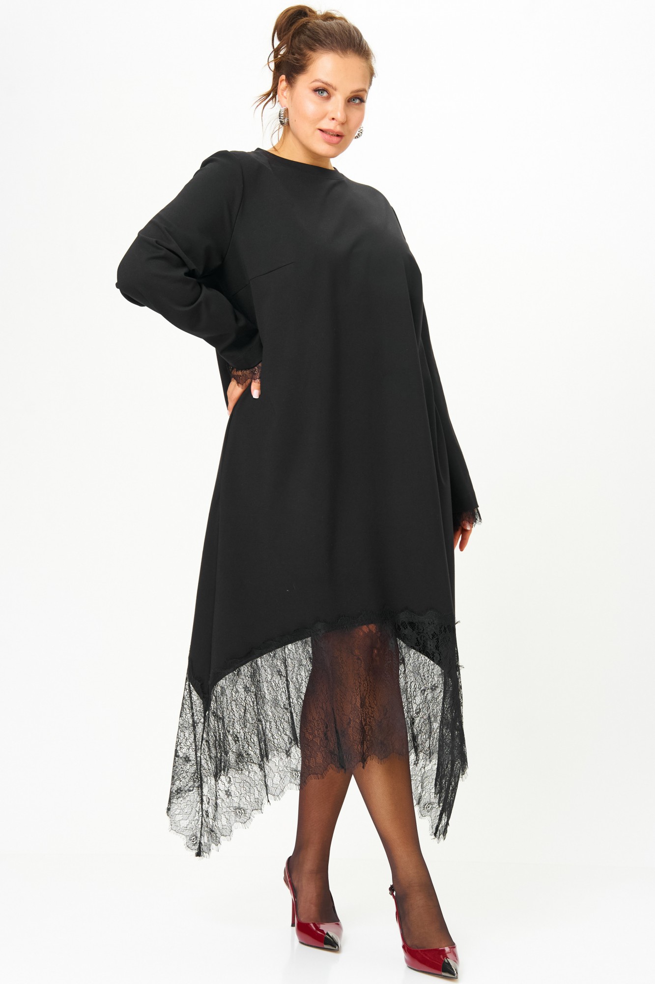 Эффектное платье выполнено из трикотажного полотна. Платье свободного трапециевидного силуэта, длиной макси. Рукав втачной длинный с манжеткой из кружева. В боковых швах имеются функциональные карманы. Низ платья оформлен кружевным воланом. Длинный фасон дает возможность создания стильного образа. Если немножко пофантазировать с обувью получится много стильных и интересных вариантов образа. Ботинки - брутальность и дерзость, туфли -романтичность и сексуальность.