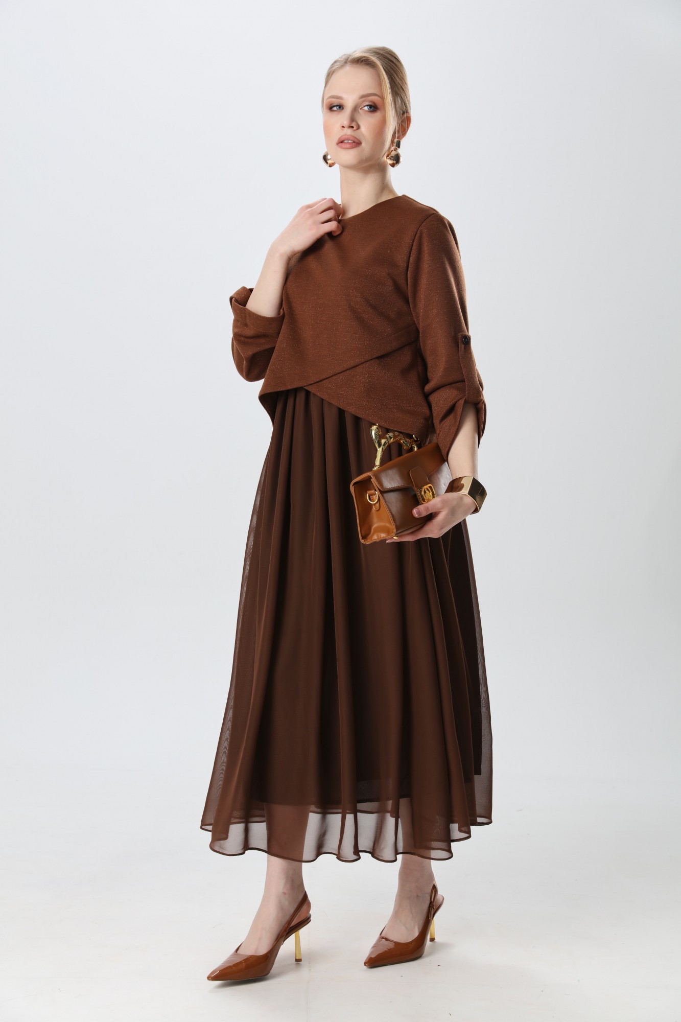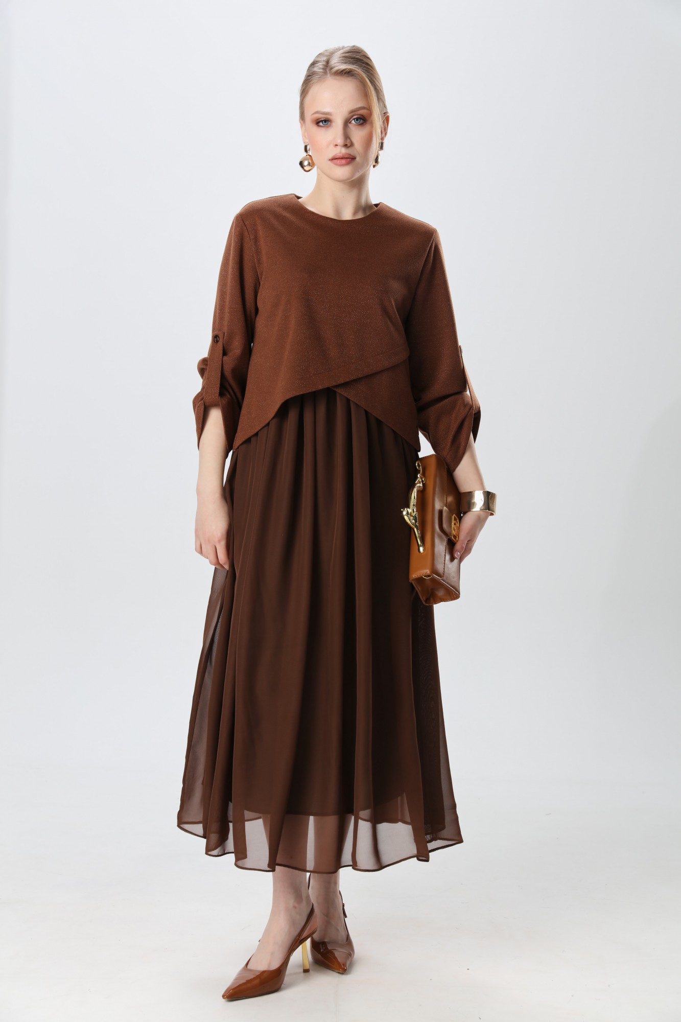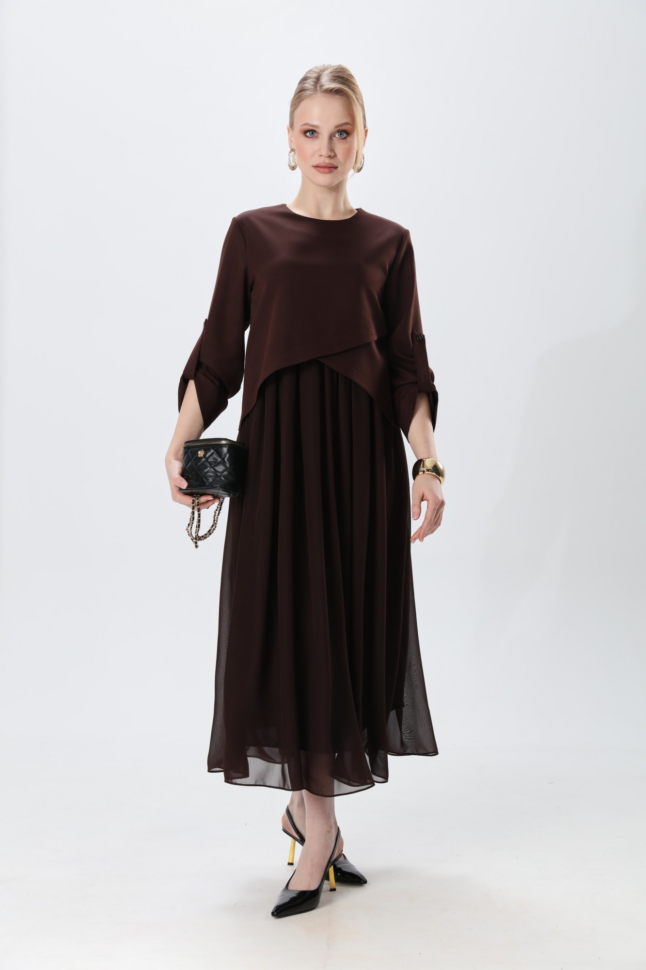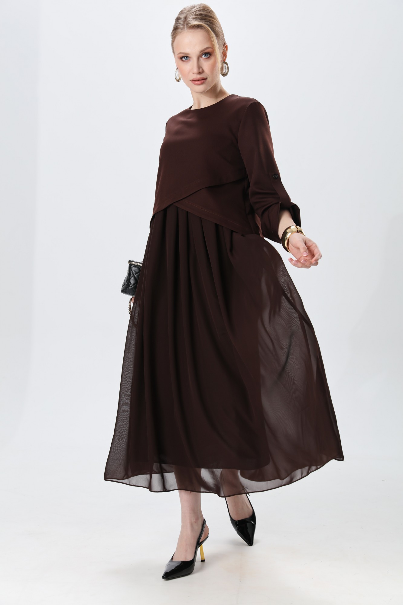 При создании платья могут использоваться различные ткани, как натуральные, так и синтетические, а также их комбинация. Для летнего сезона активно применяются легкие ткани.
