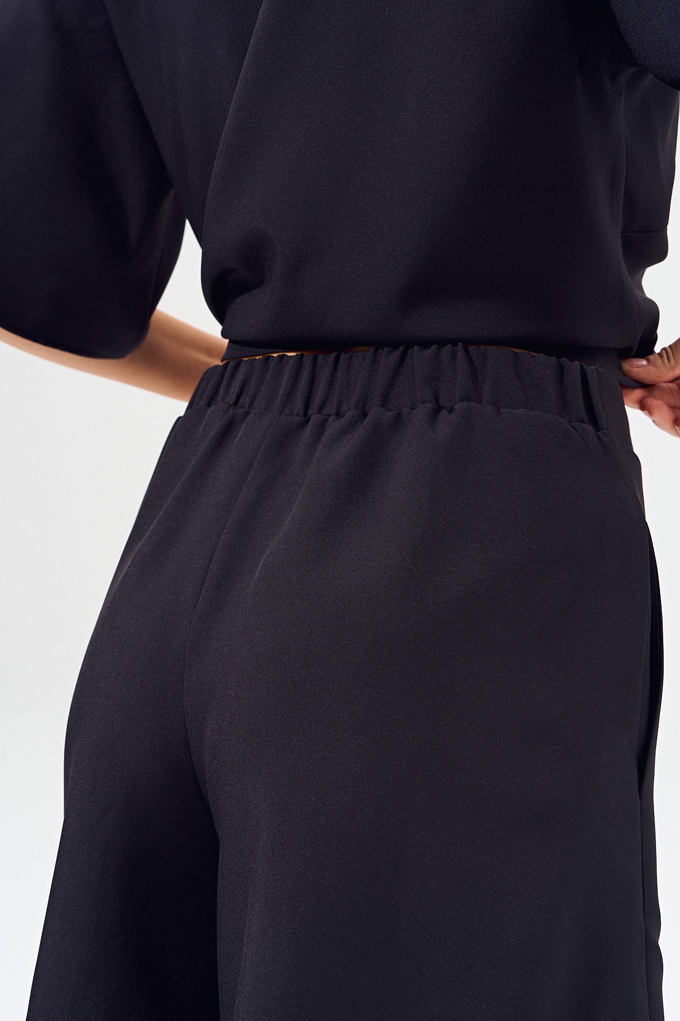Базовые женские шорты полуприлегающего силуэта с завышенной линией талии выполнены из легкой струящейся ткани. По переду функциональные карманы, притачной пояс по спинке полностью на резинке для лучшего прилегания.