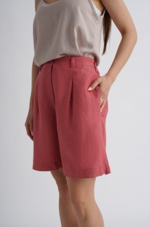 Удобные летние, свободные Бермуды изготовлены из качественного льна с эффектом мятости. В боковых швах карманы. Застёгиваются на молнию и пуговицу. В задней части пояса вставлена резинка. Посадка высокая.