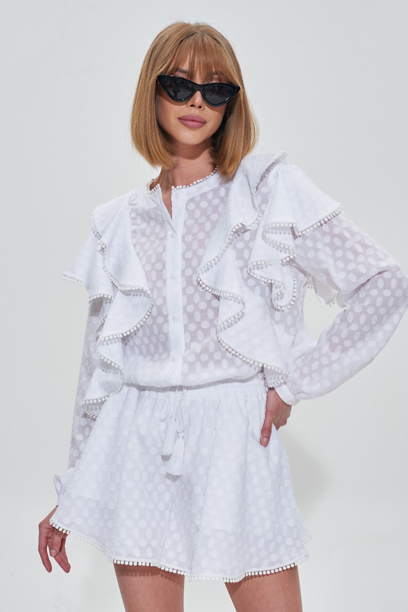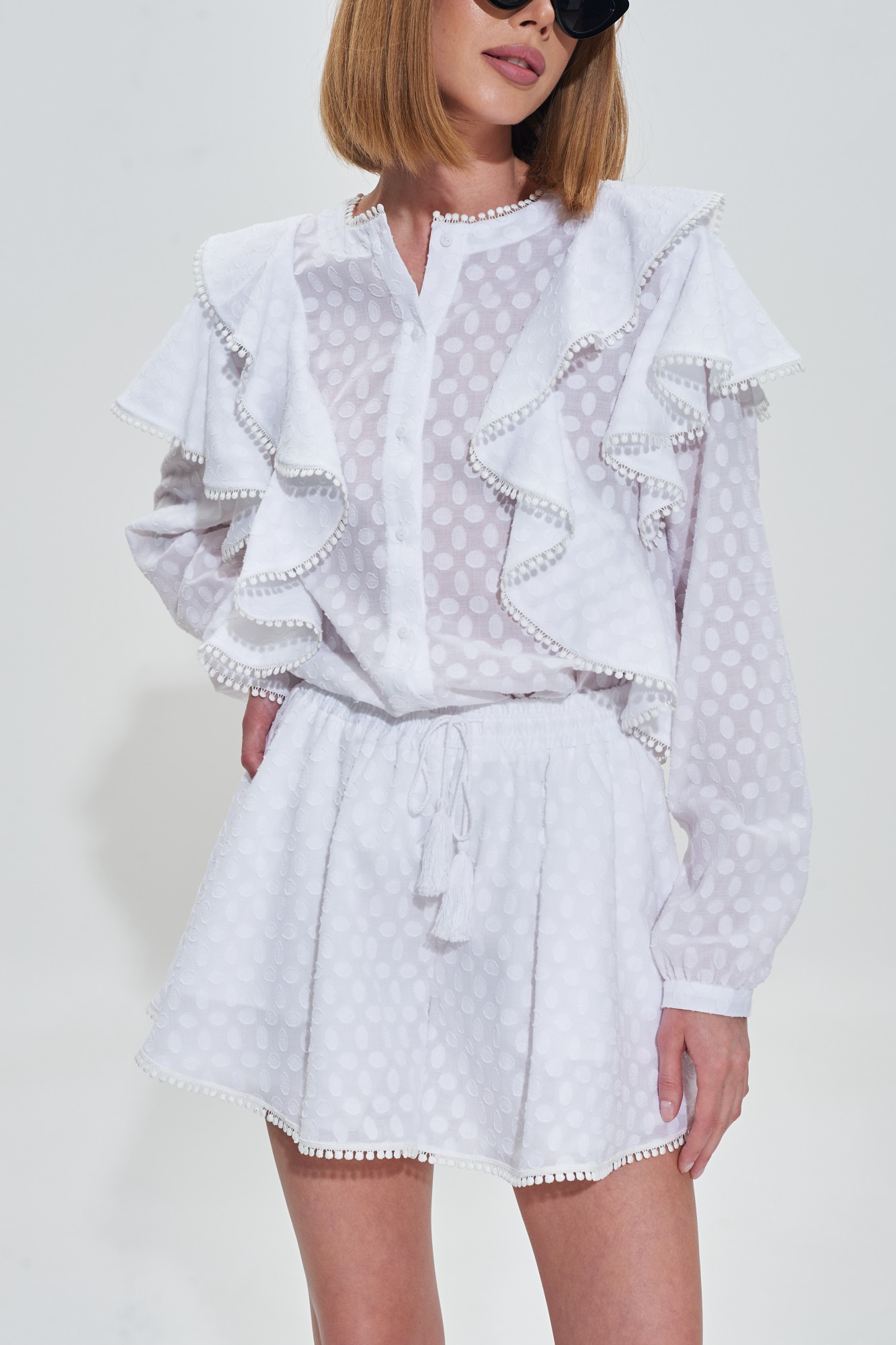 Отличное решение на лето! Шорты из хлопка. Позволяют коже дышать и чувствовать себя свободно. Шорты декорированы тесьмой. Изделие на легкой хлопковой подкладке, пояс с резинкой. Эти элементы создают неповторимый образ. Вы точно обратите на себя внимание!
