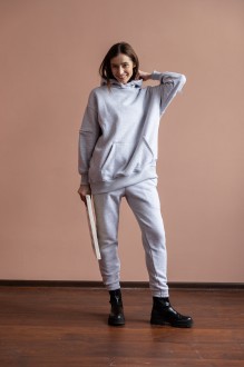 Женский костюм выполнен из хлопкового трикотажа футер 3х-нитка. Укороченный свитшот с приспущенным плечом свободного прилегания, по переду украшен принтом "#girlboss". Манжеты и низ выполнены из основной ткани. Можно комбинировать с удлиненной майкой. Укороченные клешеные брюки с лампасами и карманами, пояс на резинке. Длина свитшота по спинке 44 (+/- 1см), длина рукава от горловины 78 (+/- 1см) . Длина брюк по боковому шву 94 см, по шаговому шву 67 см. Рост модели на фото 171 см.