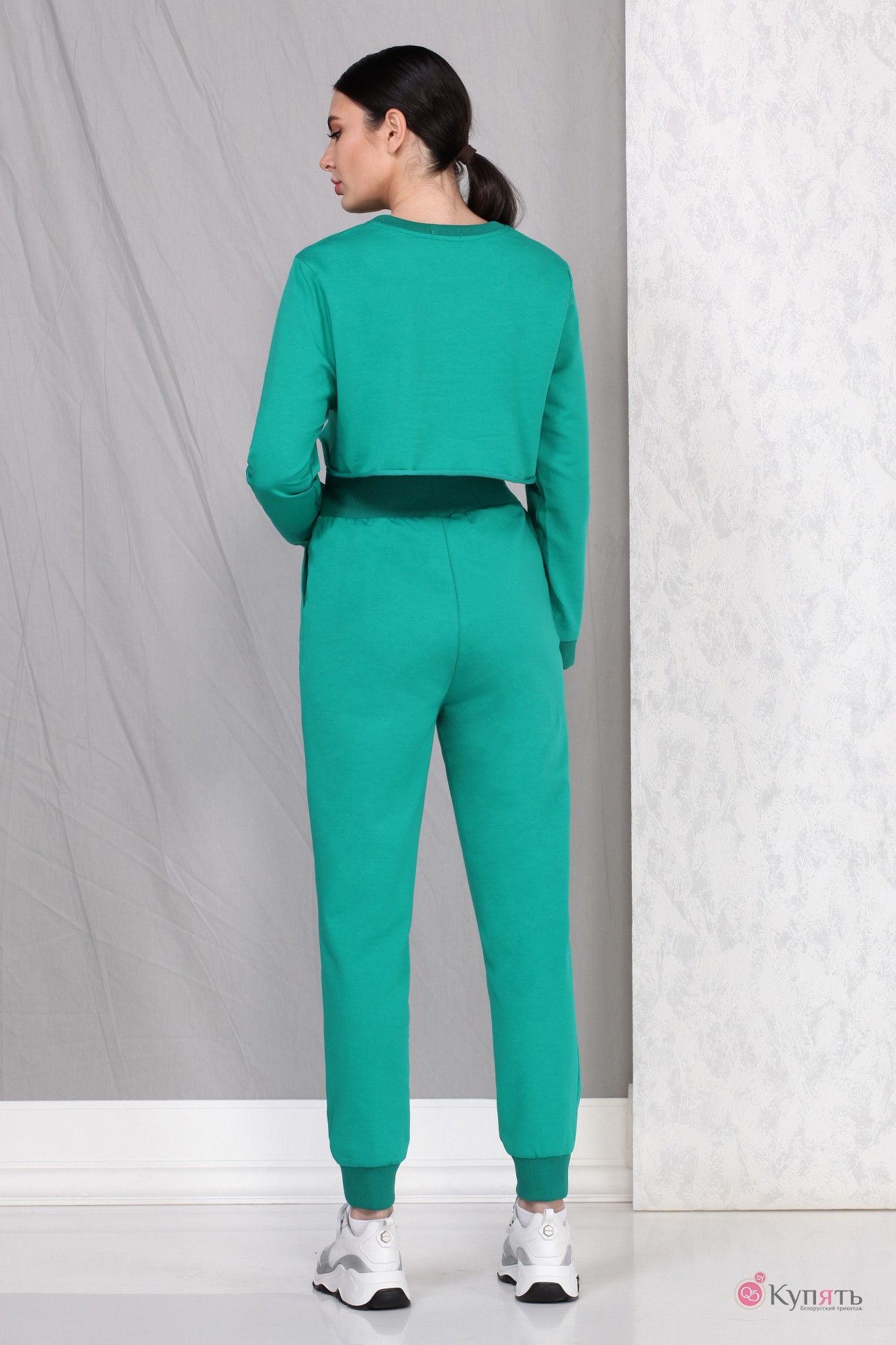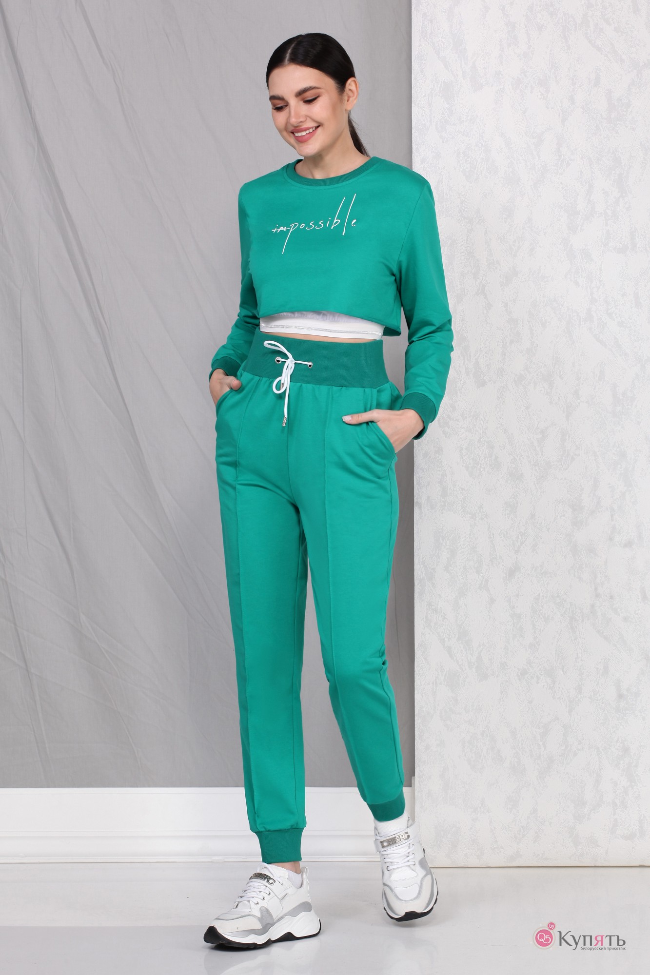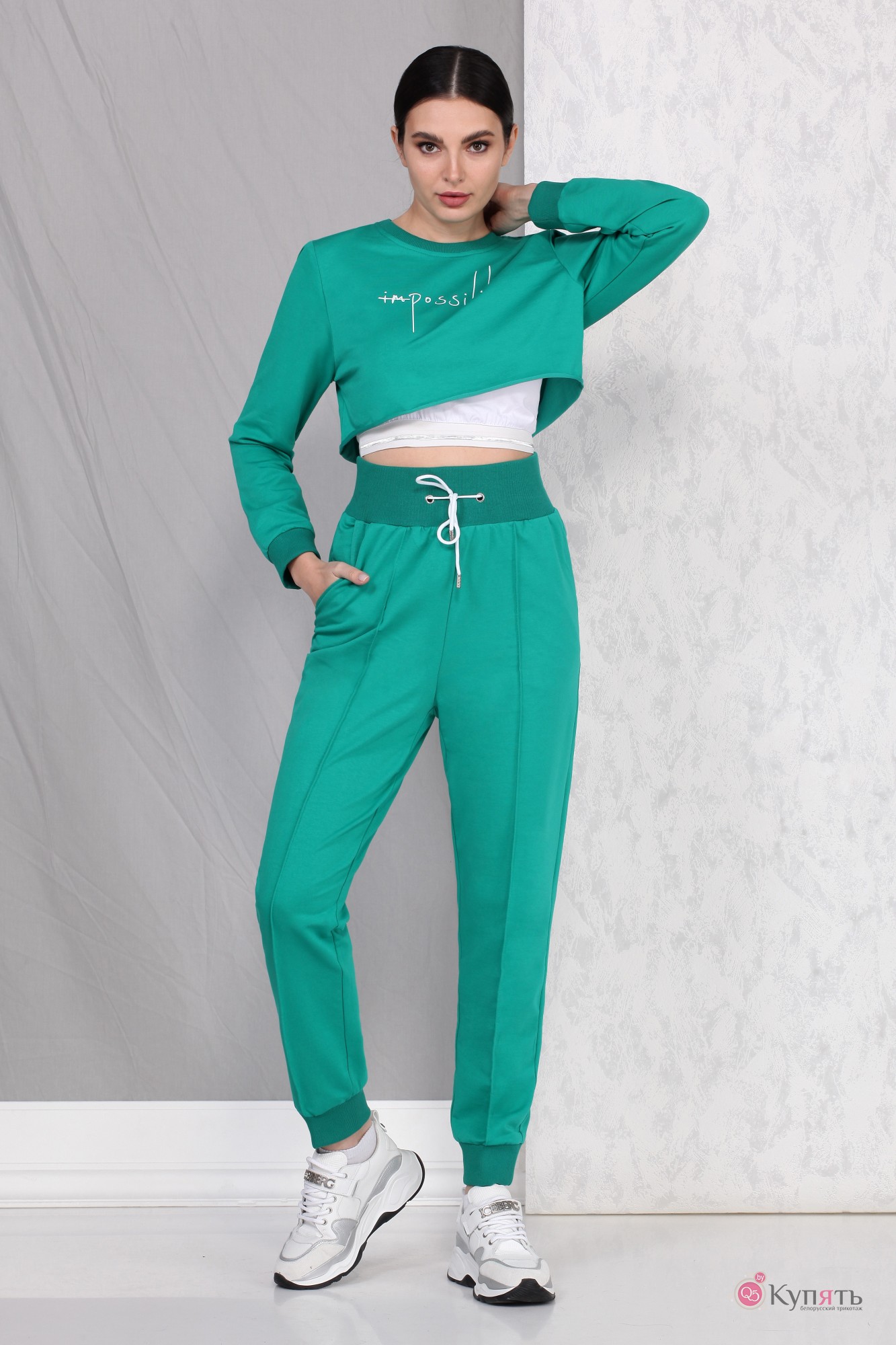 Спортивный комплект, состоящий из трех элементов: топа, брюк и свитшота.