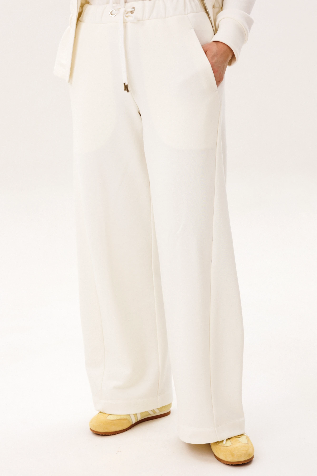 Лаконичный спортивный костюм в светлом оттенке — идеальное сочетание комфорта, минимализма и современной эстетики. Универсальный дизайн делает модель актуальной как для активного отдыха, так и для повседневных образов в стиле casual. В комплект входит: Куртка на молнии с воротником-стойкой и эластичной линией талии. Брюки прямого кроя с комфортной посадкой и функциональными карманами. Костюм выполнен из качественного хлопчатобумажного футера — мягкого, дышащего и приятного к телу материала. Ткань отлично сохраняет тепло, при этом обеспечивая комфорт и свободу движений в течение всего дня. Куртка подчёркивает силуэт за счёт аккуратной посадки и резинки по талии, а брюки создают вытянутый и элегантный силуэт благодаря прямому крою. Преимущества модели: натуральный хлопковый футер. мягкость и комфорт при носке. современный минималистичный дизайн. универсальность для повседневного гардероба. Костюм легко комбинируется с базовыми футболками, худи и спортивной обувью, позволяя создавать стильные и удобные образы на каждый день. Идеальный выбор для тех, кто ценит комфорт, качество и актуальный стиль.