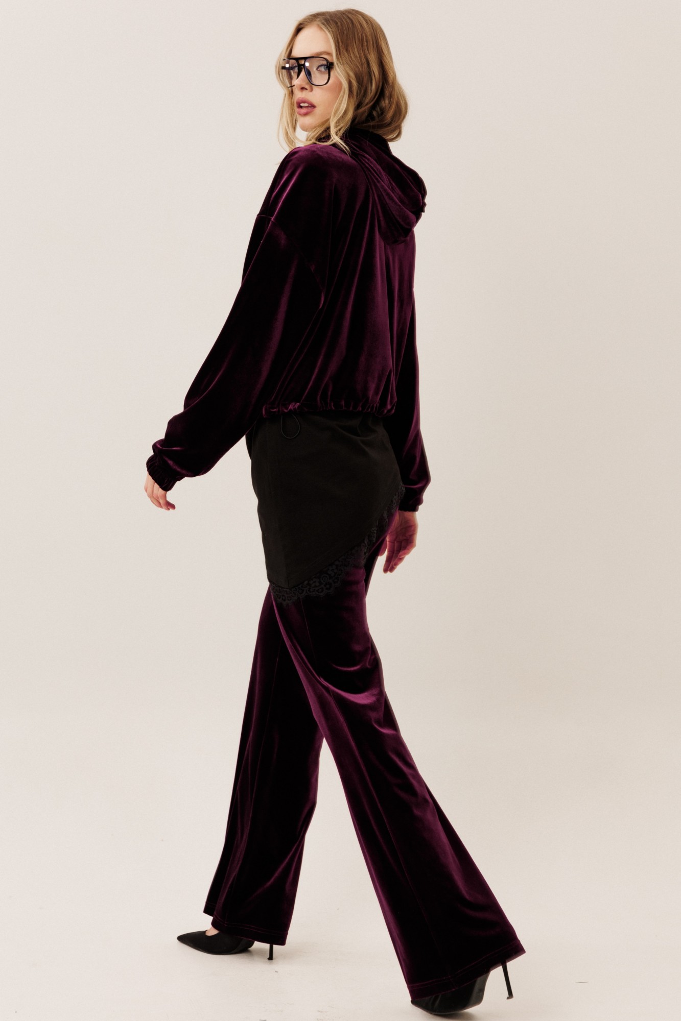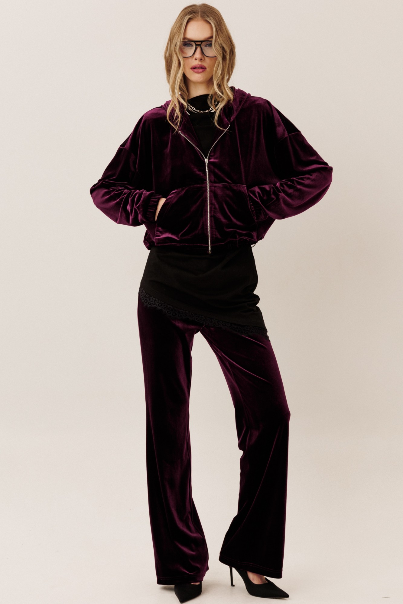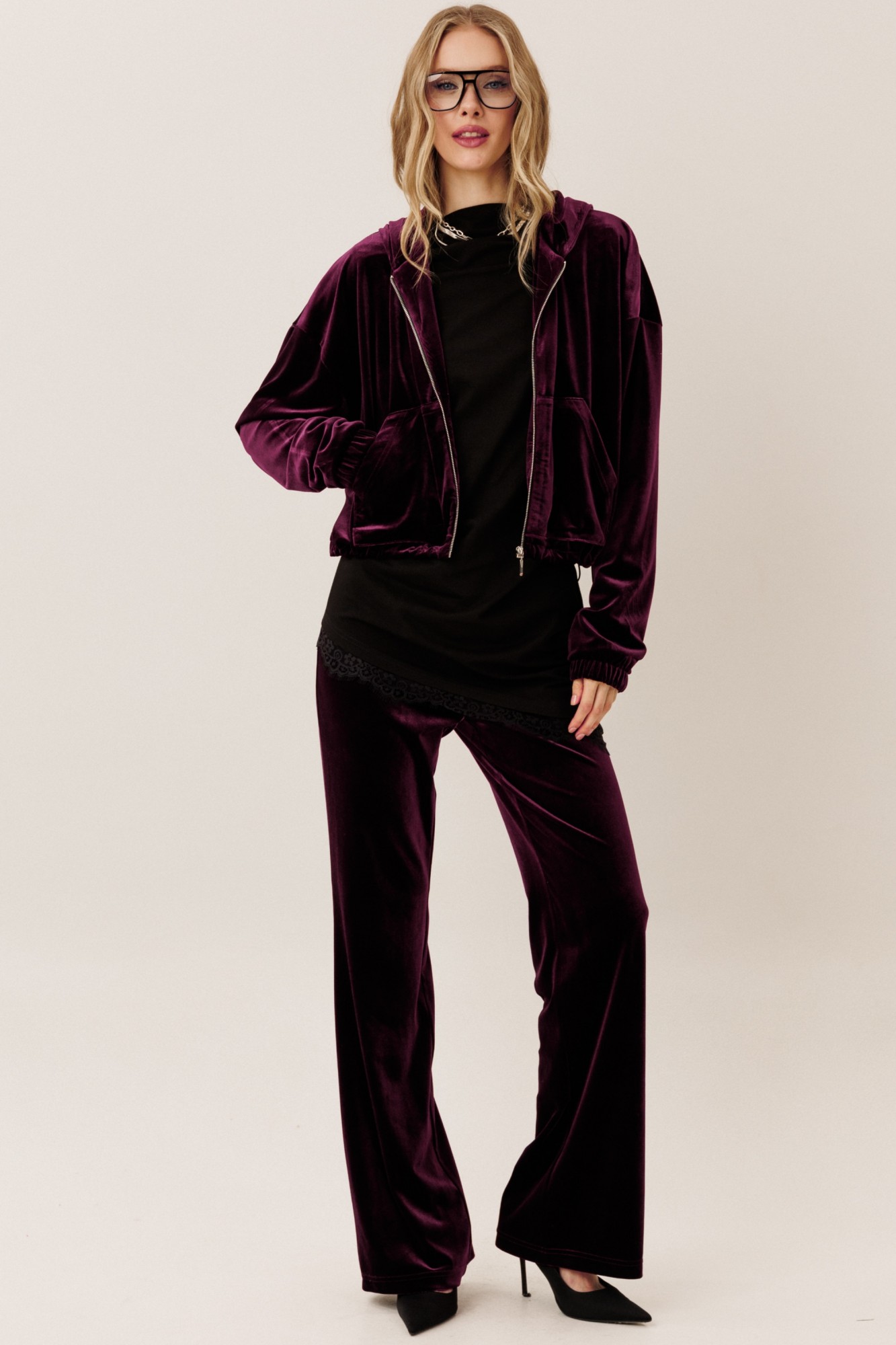 Самый тренд этого сезона в коллекции от GO - шикарный велюровый костюм! Худи на молнии вместе с брюками клеш - лучшее решение для Вас! Будьте стильными вместе с нами!