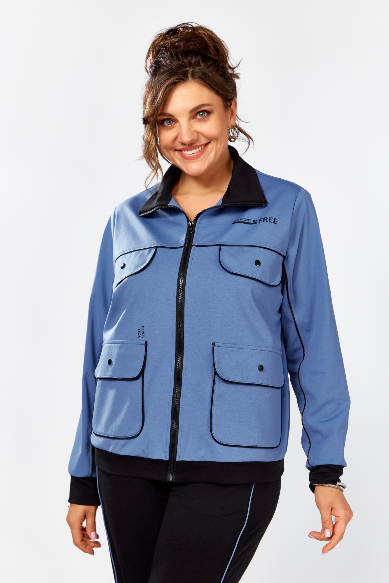 Стильный, удобный, трикотажный, спортивный костюм для активной повседневной жизни, в котором сочетаются модный дизайн и комфорт. Бомбер свободного силуэта на молнии, воротник отложная стойка. Накладные карманы, клапаны, кокетка и рукава декорированы отделаны контрастным черным кантом, в цвет брюк. Брюки на резинке с боковыми карманами и подрезами с декоративным кантом. Костюм отлично садится и скрывает недостатки фигуры из-за хорошо продуманных конструктивных линий и пропорций.
