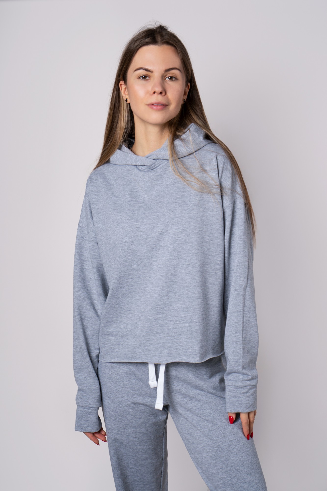 Выполнен из качественного трикотажного полотна. Джемпер свободного кроя , с двойным капюшоном.