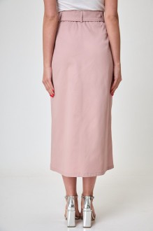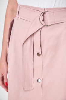 Юбка женская трапециевидного силуэта, длина миди. По переду защипы, боковые карманы с декоративным клапаном. Застежка спереди на кнопках. По спинке талиевые вытачки и от бокового шва в поясе резинка. Талию можно дополнительно подчеркнуть съёмным поясом. Вся необходимая информация о производителе указана на этикетке.