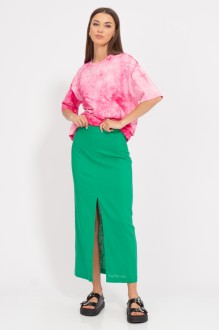 Юбка женская, силуэт трапеция, длина миди. По переду застежка на молнию, пояс на петлю пуговицу, боковые карманы. По спинке накладные карманы. Юбка внизу слева с декоративной вставкой из сетки. Актуальная модель, сочные цвета, хорошая посадка и стильный образ в нынешнем сезоне.