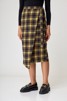 Теплая женская юбка на запах, длина ниже колена. Детали переда асимметричные, правый угол длиннее, что придаёт образу игривости. Юбка фиксируется притачным поясом с завязками и на потайную пуговицу. Отличный вариант для холодов, в ней вы будете выглядеть стильно и женственно, а актуальные расцветки добавят позитивных эмоций.