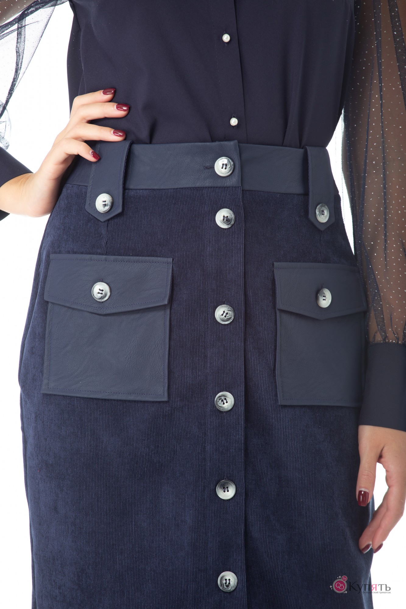 Юбка-карандаш из вельвета с кожаной отделкой создаст стильный образ!