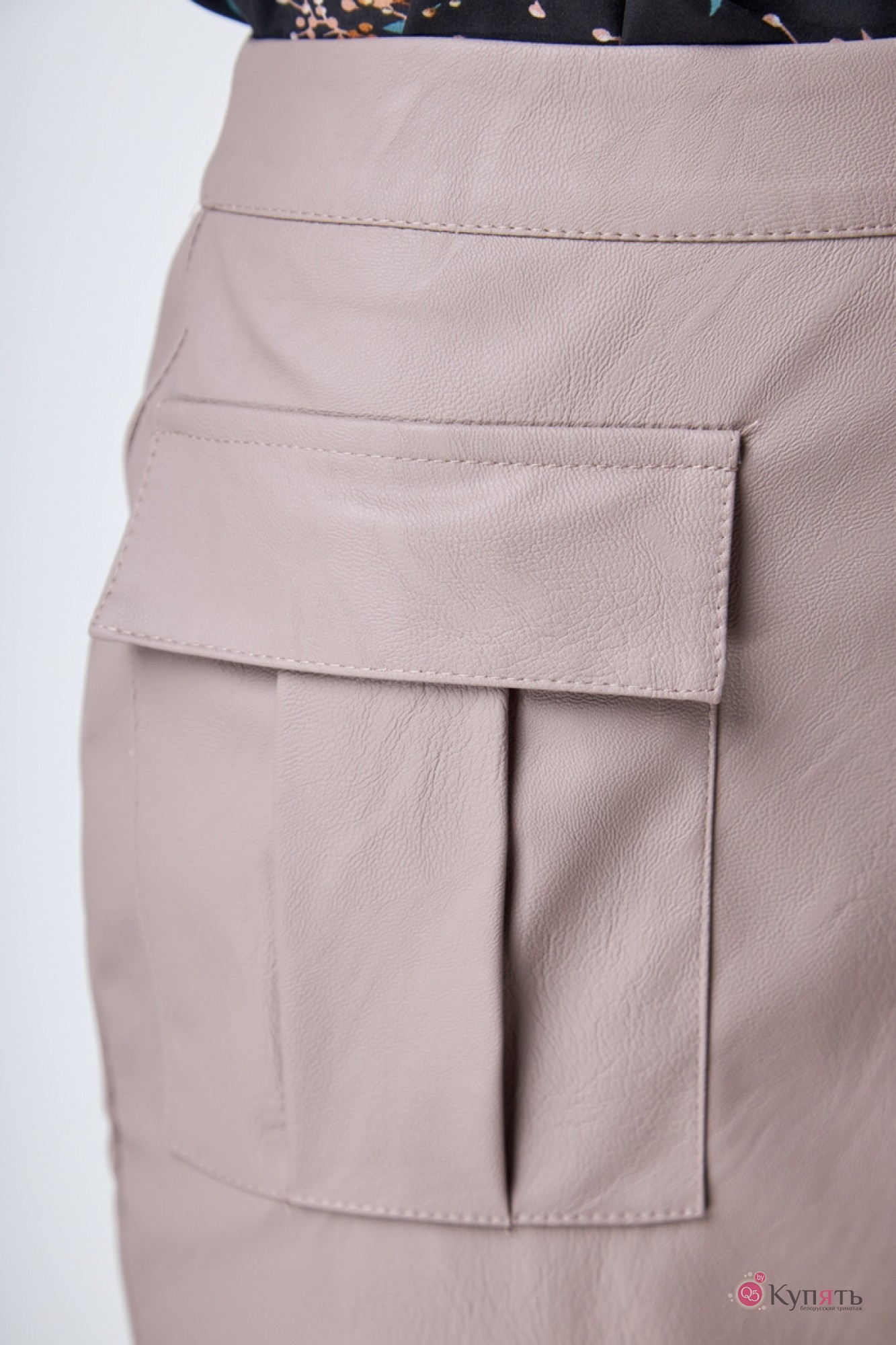 Эко кожа плотная почти не тянется, (талия не тянется совсем), не прозрачная. Выполнено без подкладки, по переду имитация «на запах».
