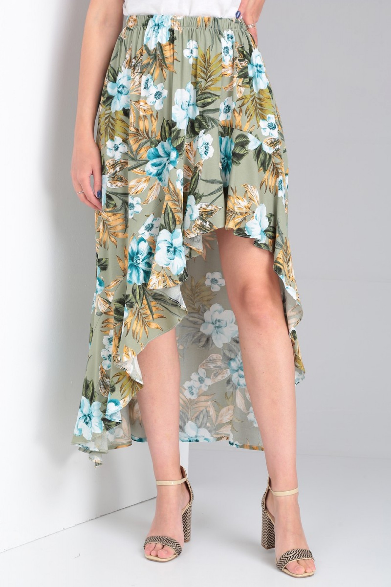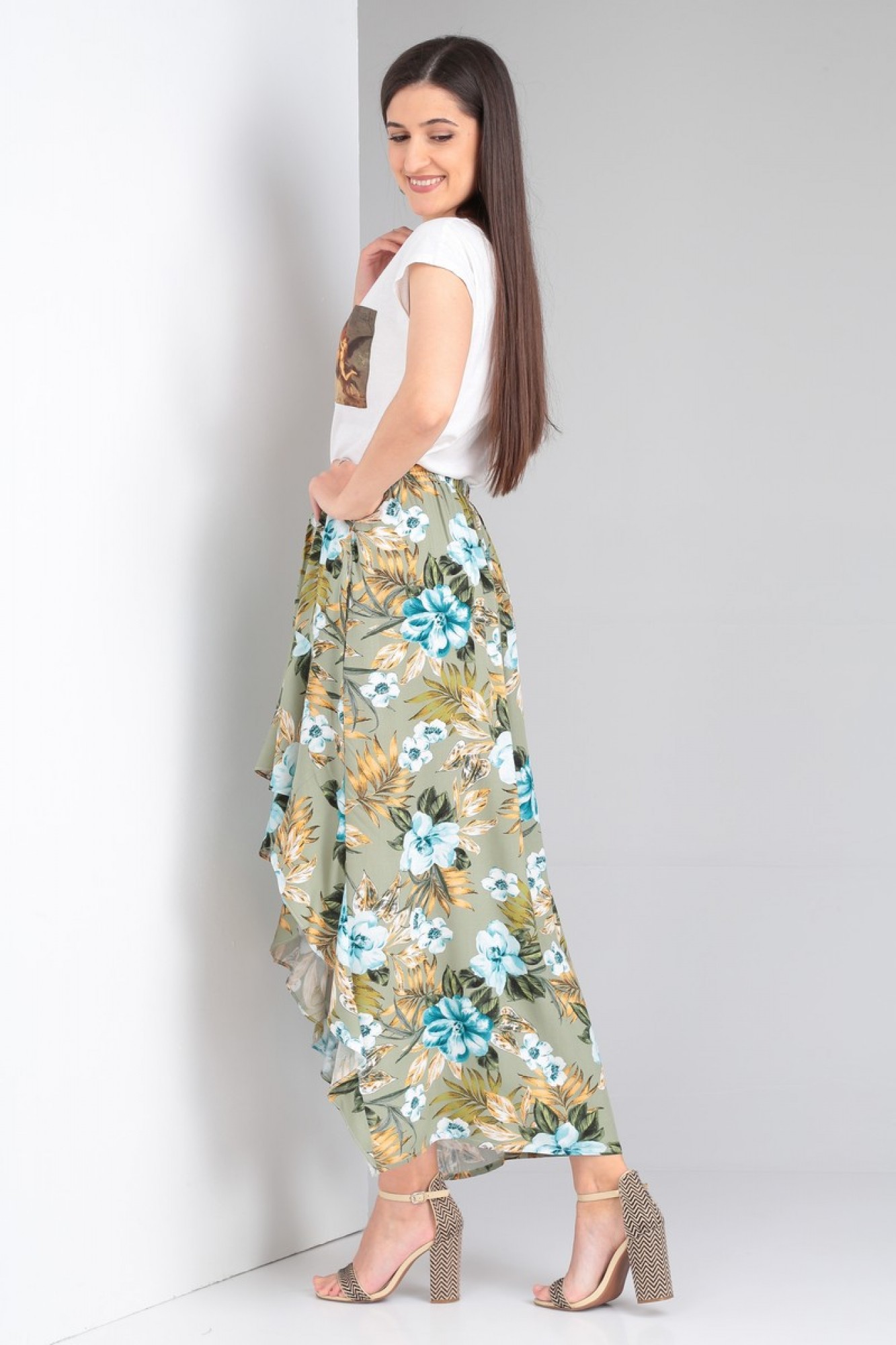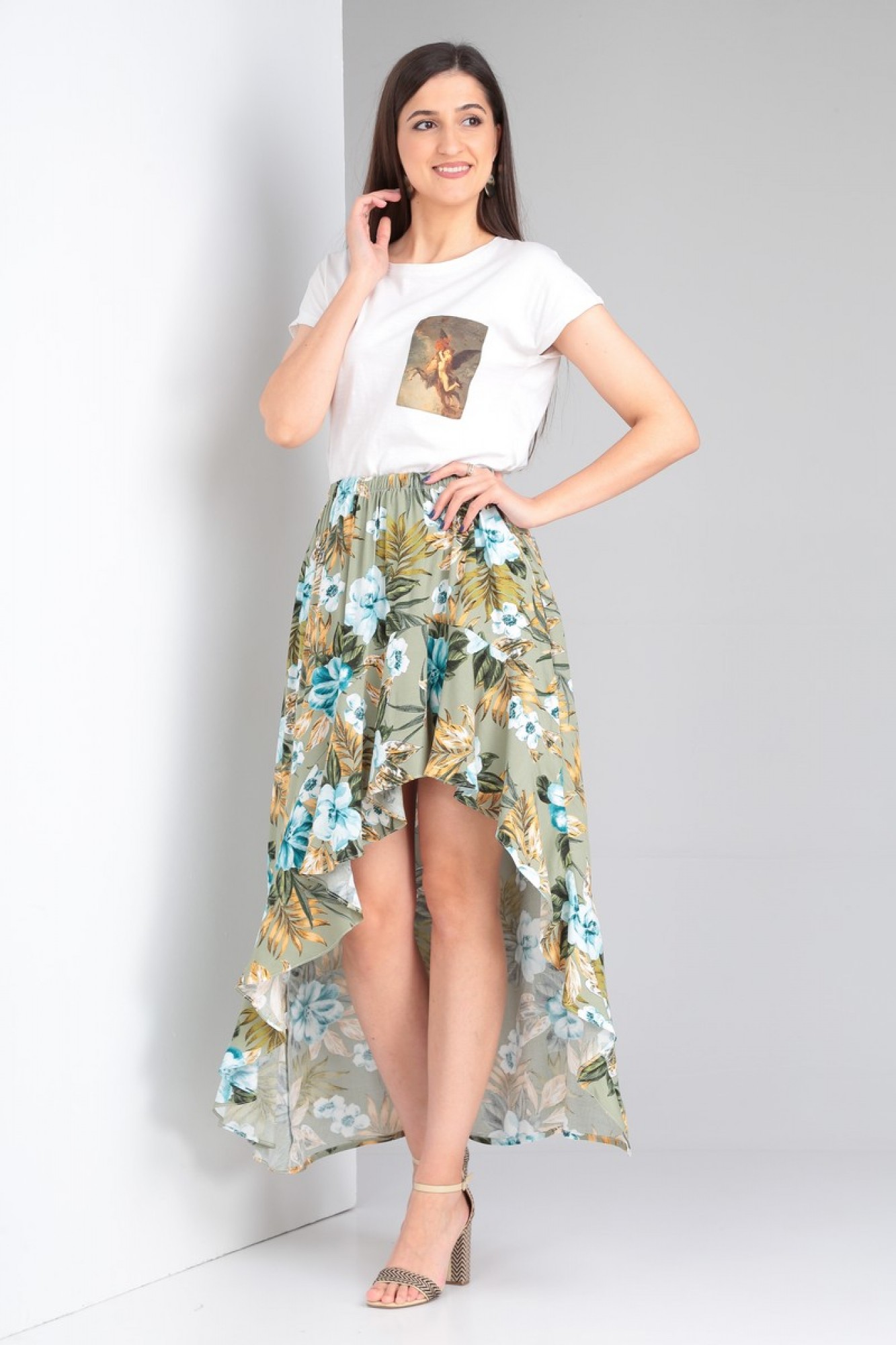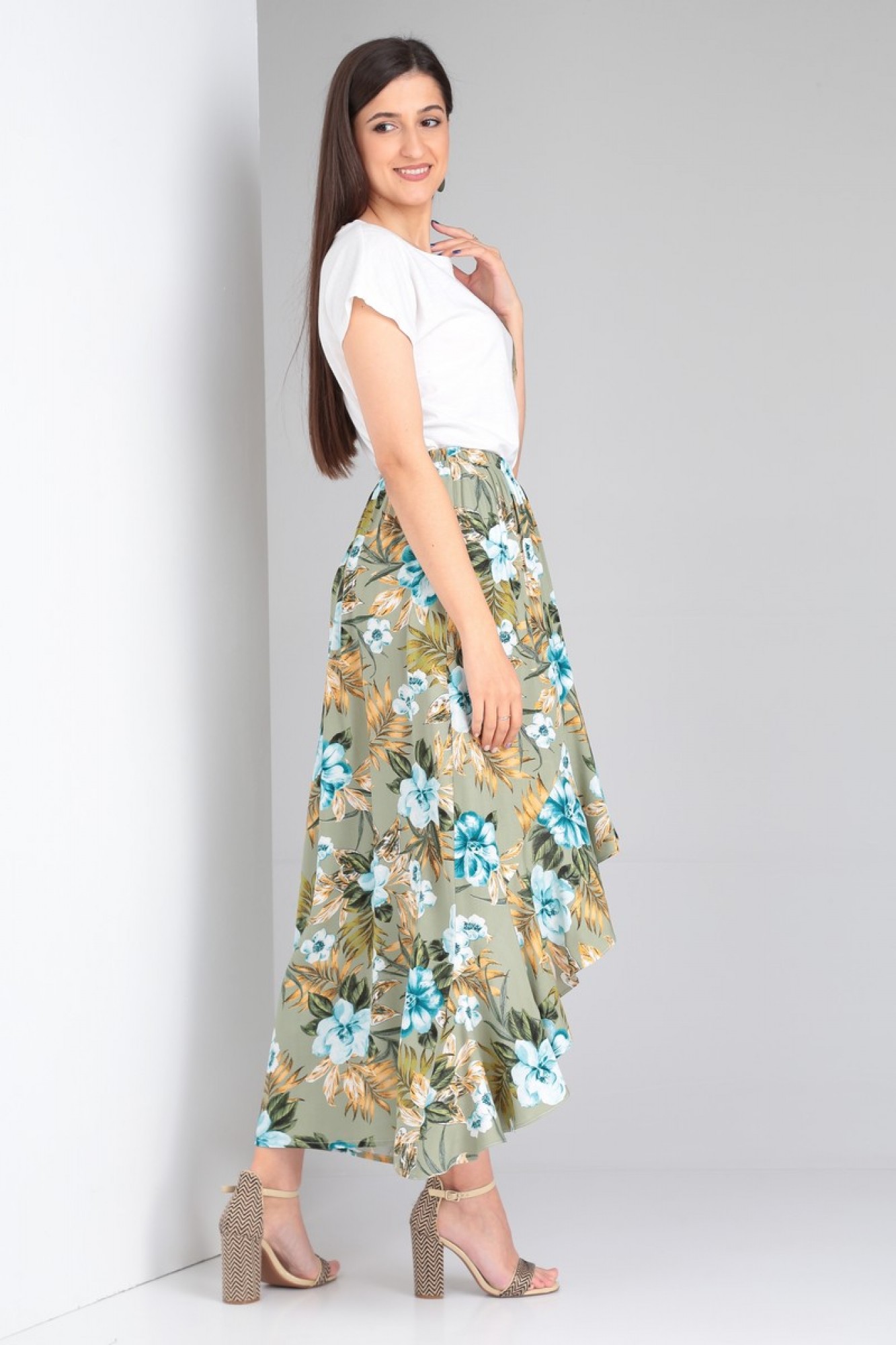 Юбка выполнена из мягкой штапельной ткани устойчивой окраски. Рост модели 170 см.