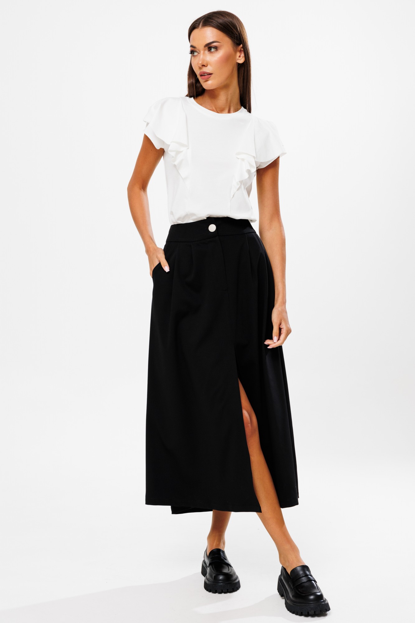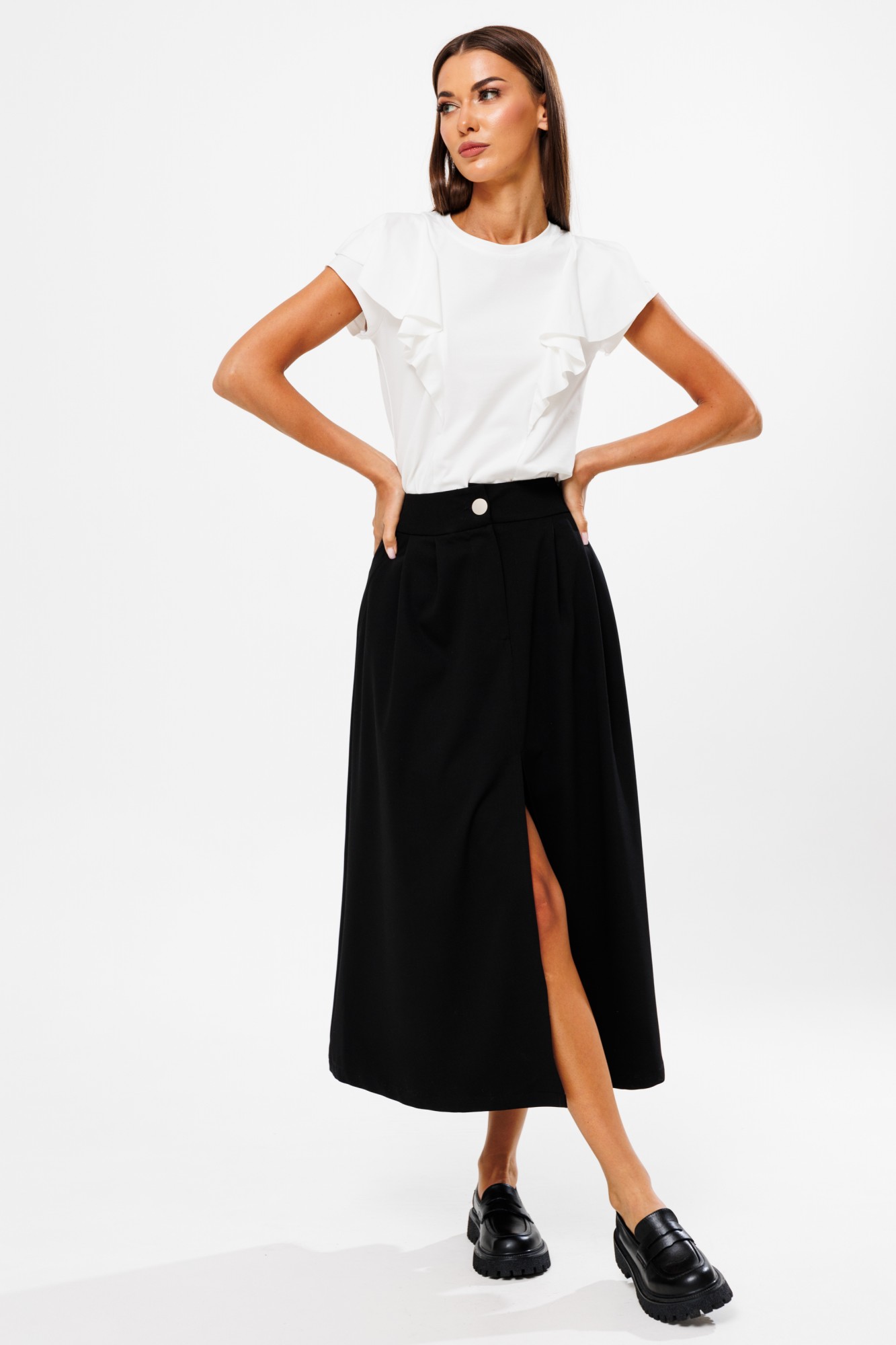 Эта элегантная длинная юбка-трапеция из костюмной ткани станет идеальным дополнением вашего гардероба. Изготовленная из высококачественной костюмной ткани, она обеспечивает комфорт и стиль на протяжении всего дня. Разрез по переду добавляет нотку дерзости и свободы движений, а карманы в боковых швах придают практичность и удобство. Идеально подходит как для деловых встреч, так и для повседневных образов. Сочетайте с блузками, топами или кардиганами для создания разнообразных стильных луков.