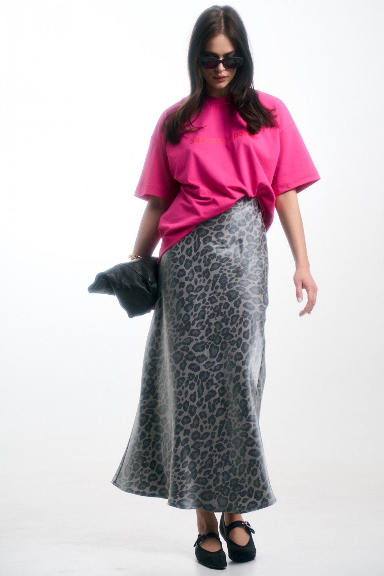 Юбка А-образного силуэта, косого кроя. Пояс на широкой резинке. Потайная молния в боковом шве.