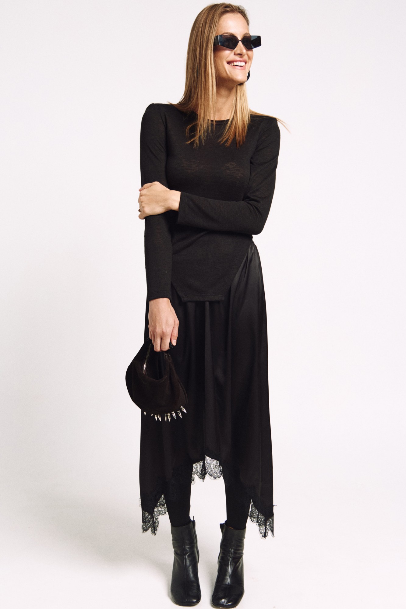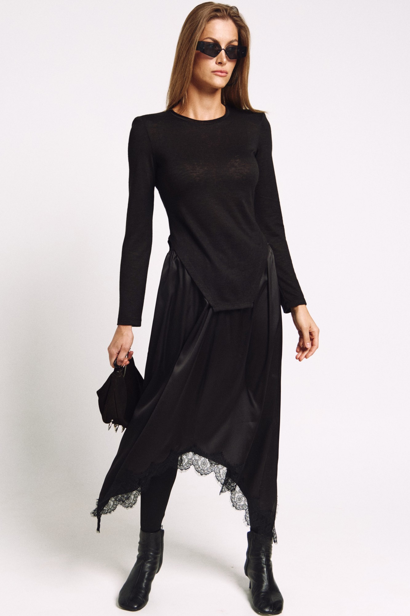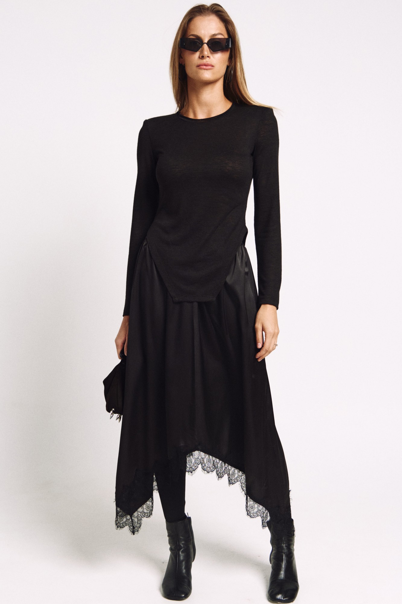 Юбка с резинкой по талии А-силуэта и фигурной линией низа отделанной французским кружевом. Два универсальных размера - S (соответствует 42-44-46), L (соответствует 48-50-52).